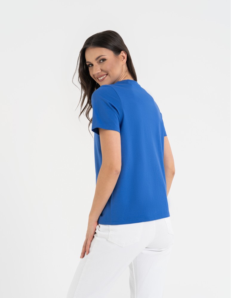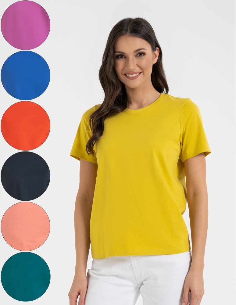 T-shirt damski bawełniany bez szwów bocznych CIEMNY RÓŻOWY