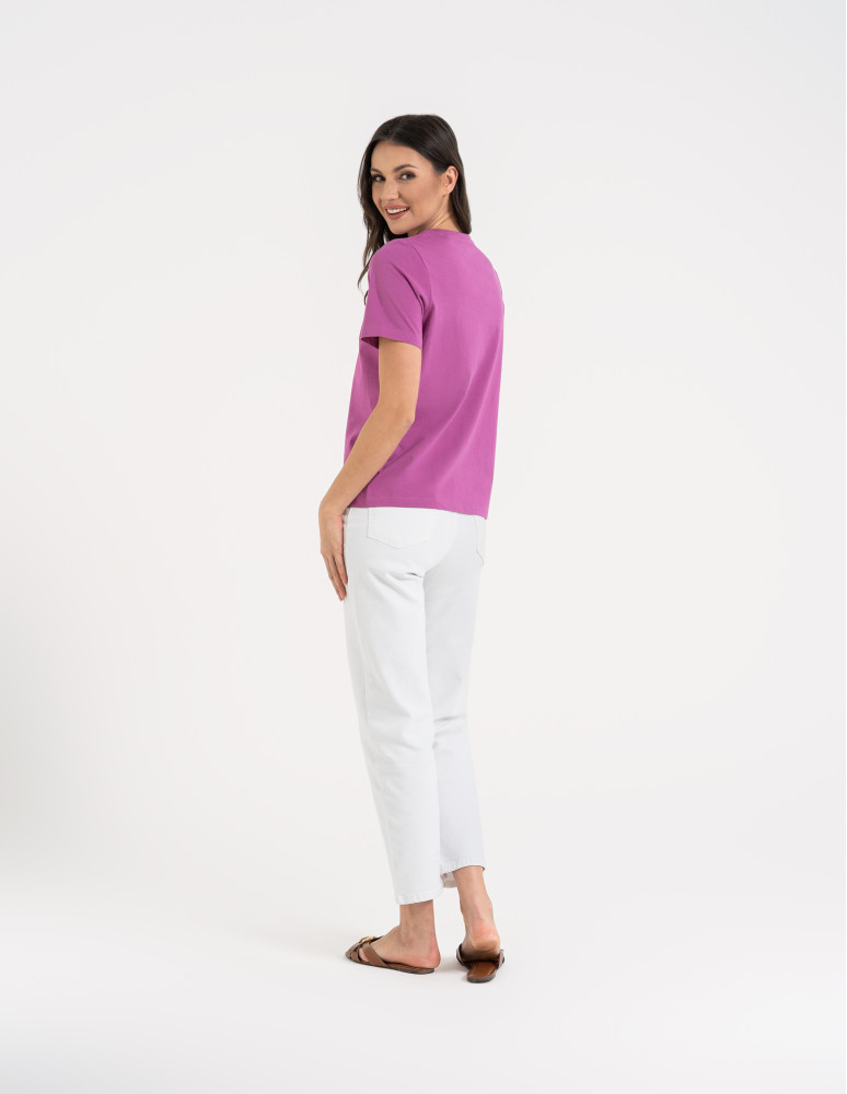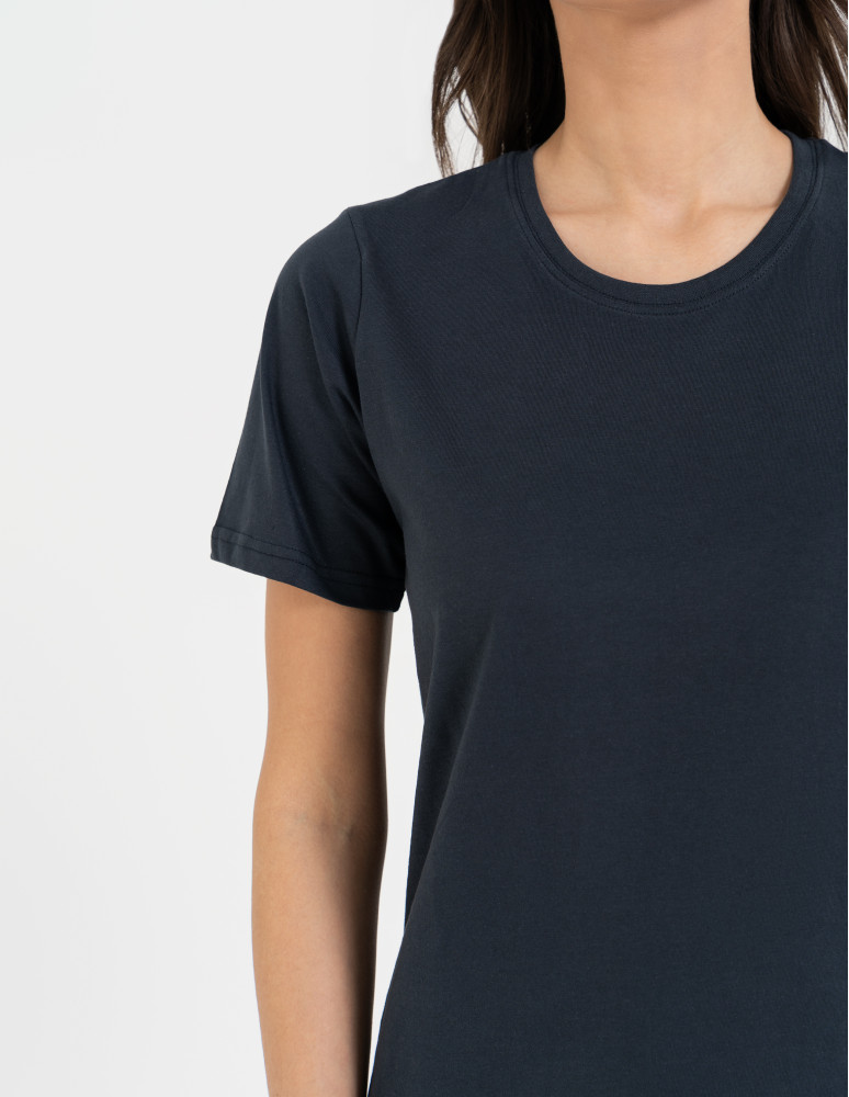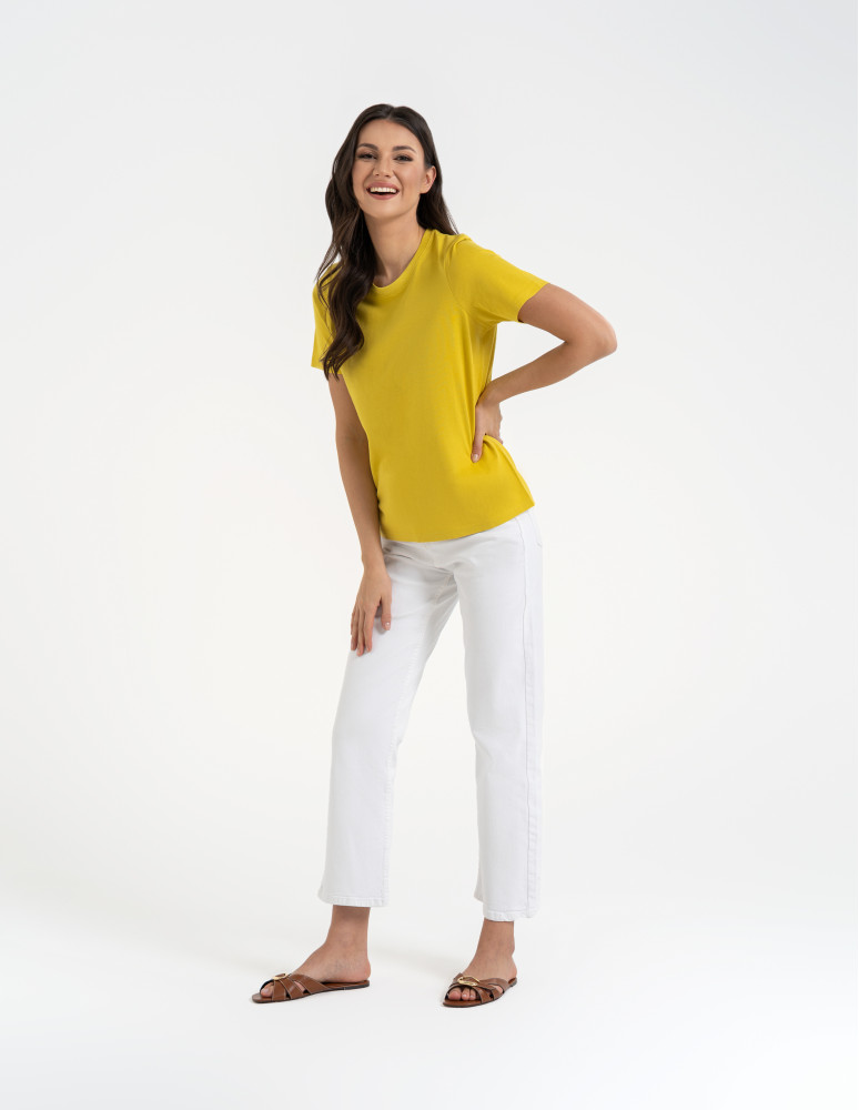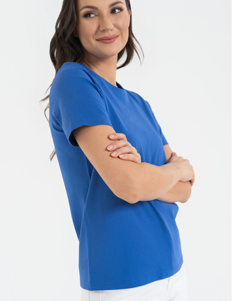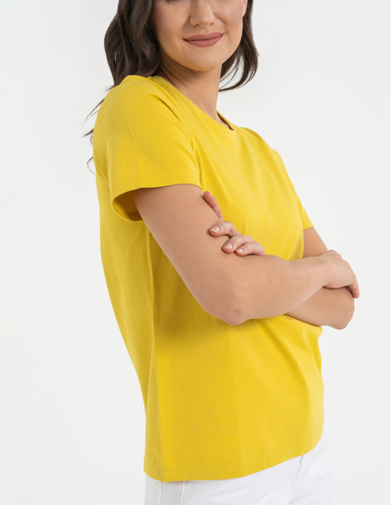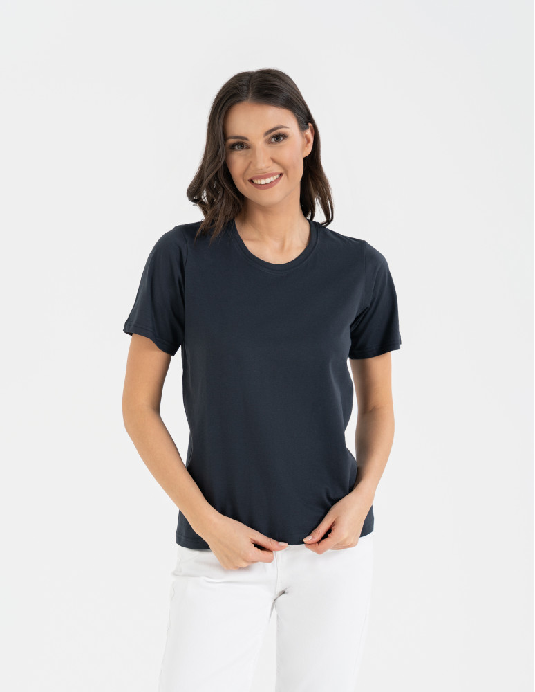 T-shirt damski bawełniany bez szwów bocznych CIEMNY ZIELONY
