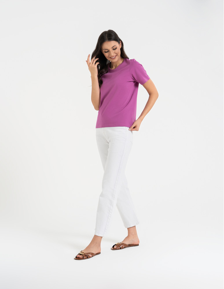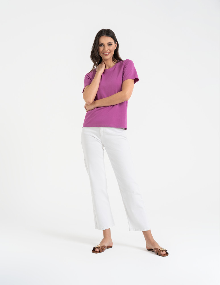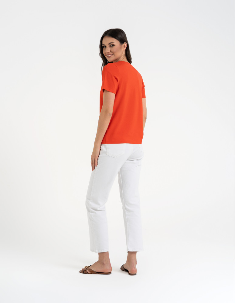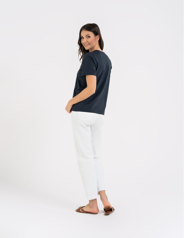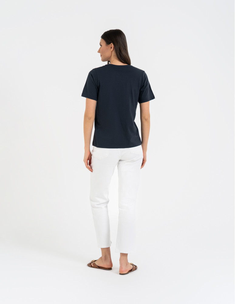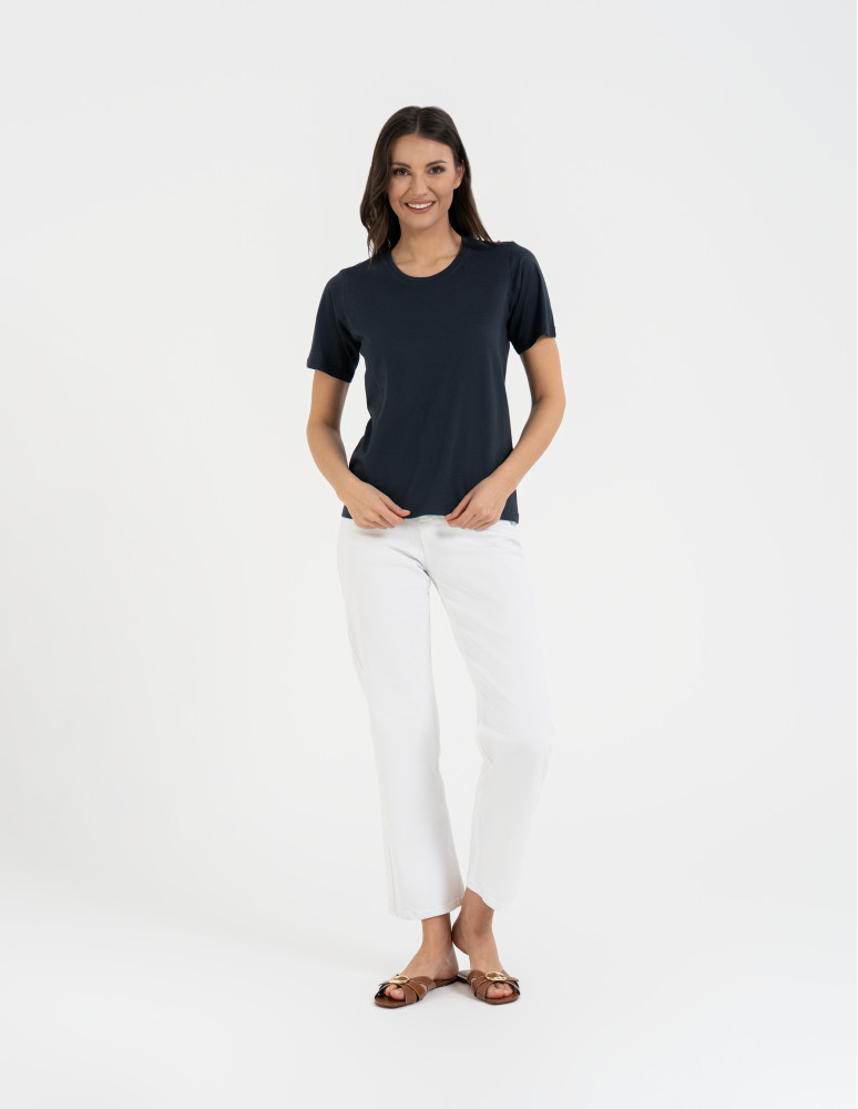 T-shirt damski bawełniany bez szwów bocznych CIEMNY ZIELONY
