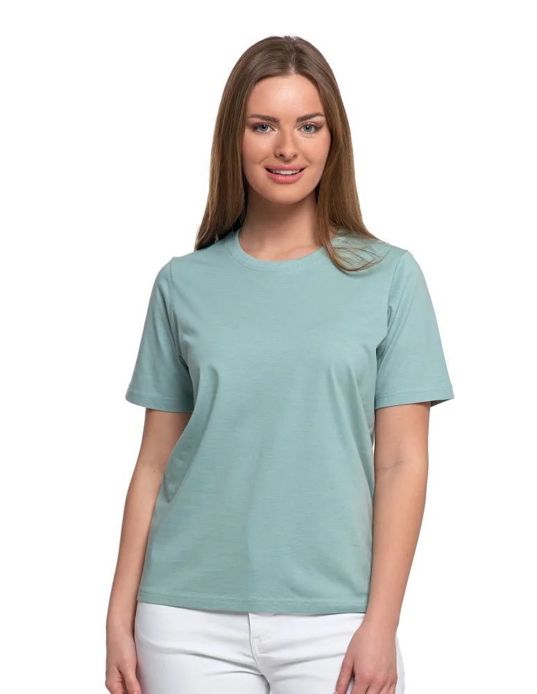 T-shirt damski bawełniany bez szwów bocznych ZIELONY