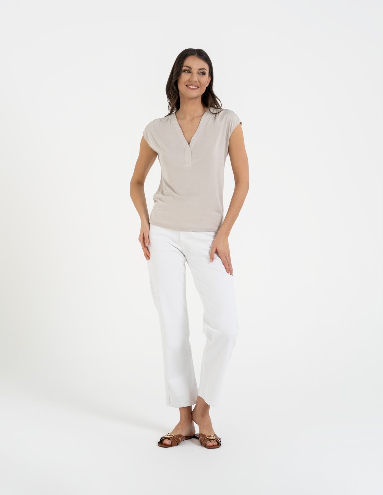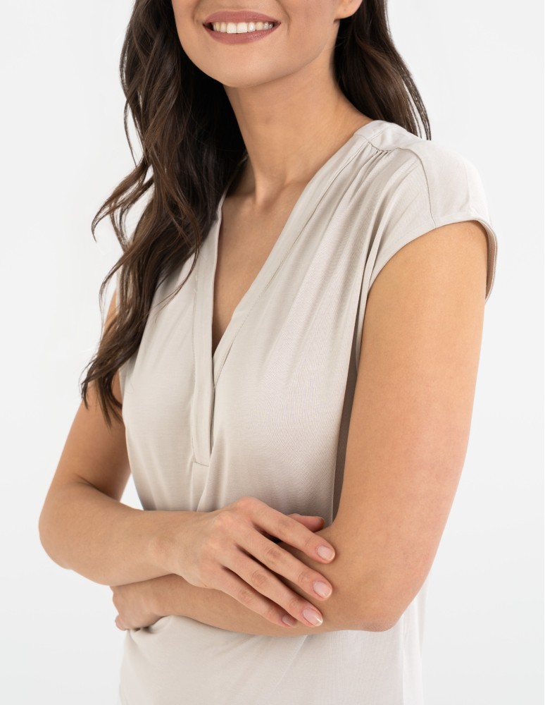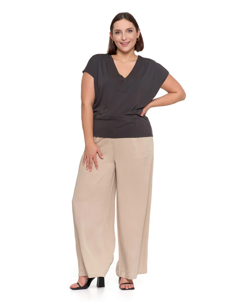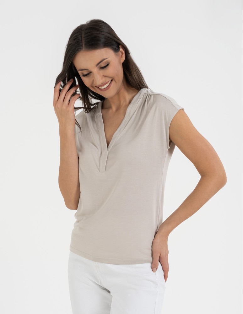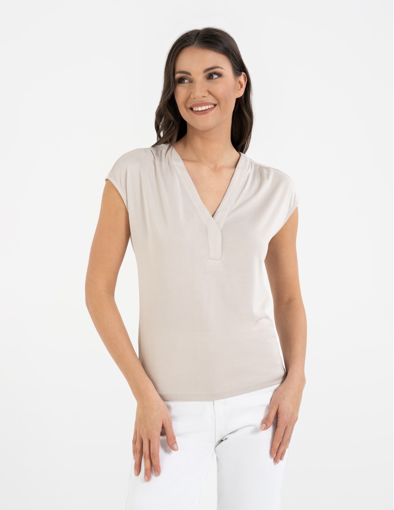 Bluzka damska z dekoltem V i krótkim rękawem GRAFIT