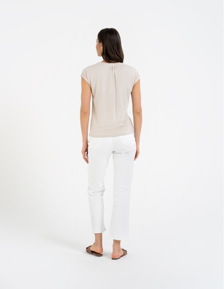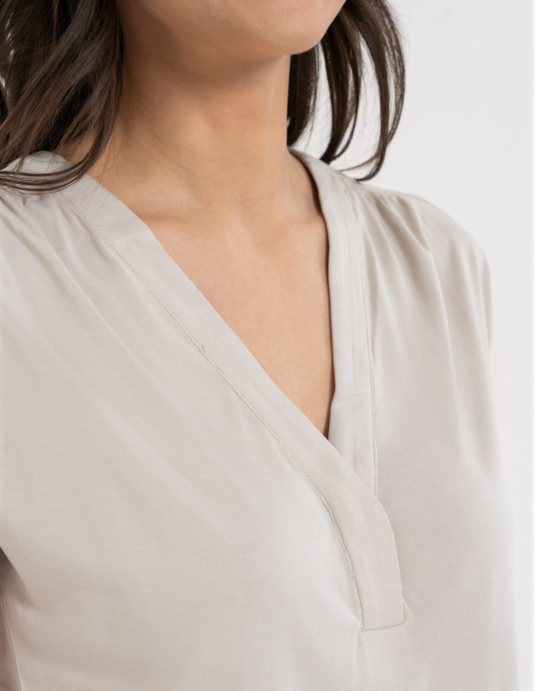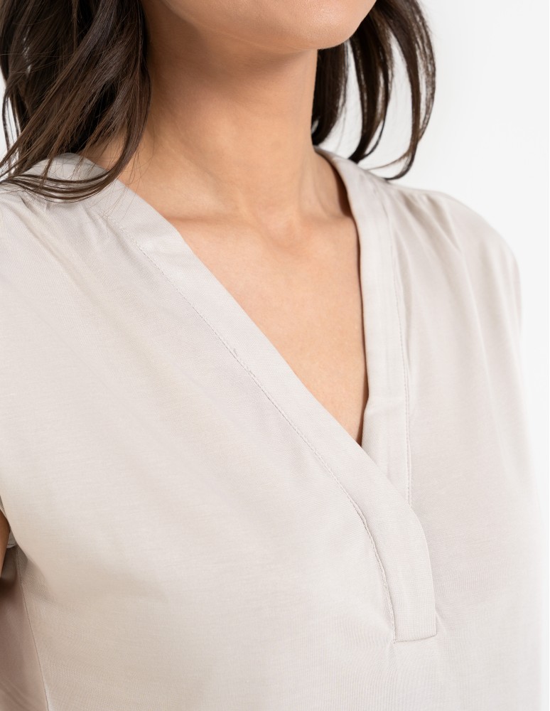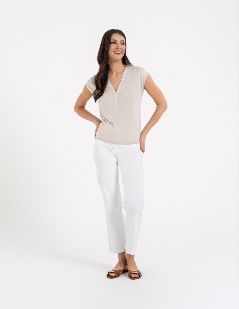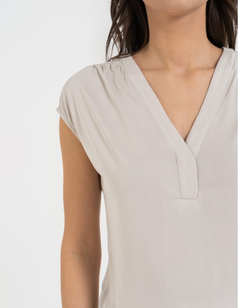 Bluzka damska z dekoltem V i krótkim rękawem GRAFIT
