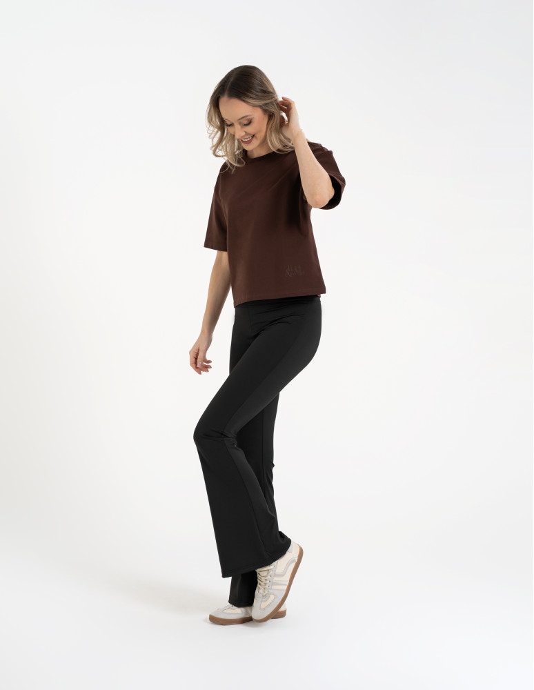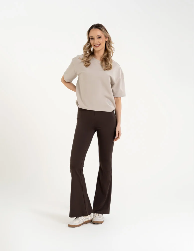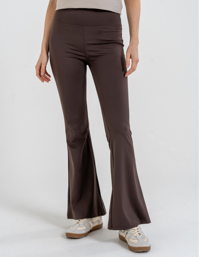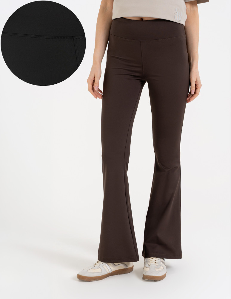 Legginsy dzwony damskie wysoki stan z rozszerzaną nogawką BRĄZOWY
