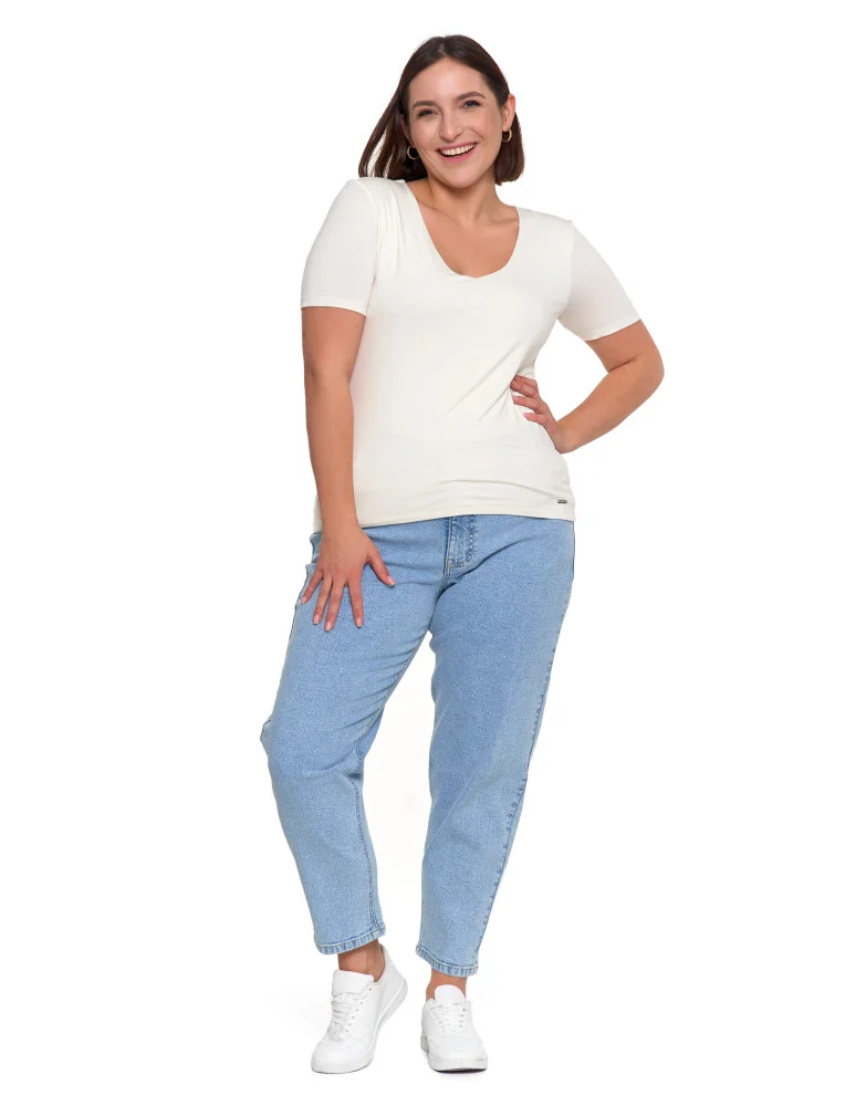 Bluzka damska z dekoltem w serek wiskozowa bez wzoru BIAŁY