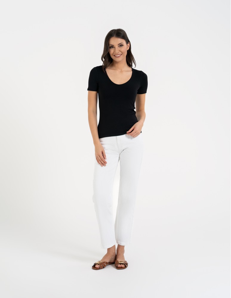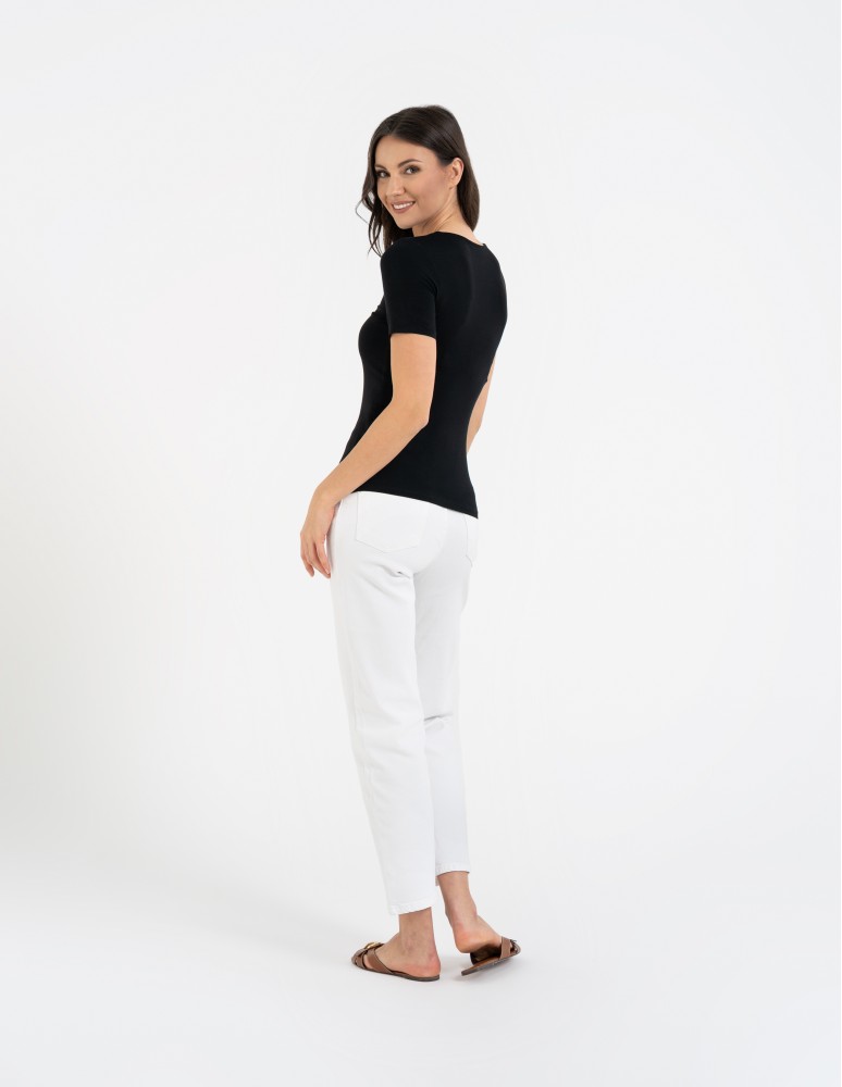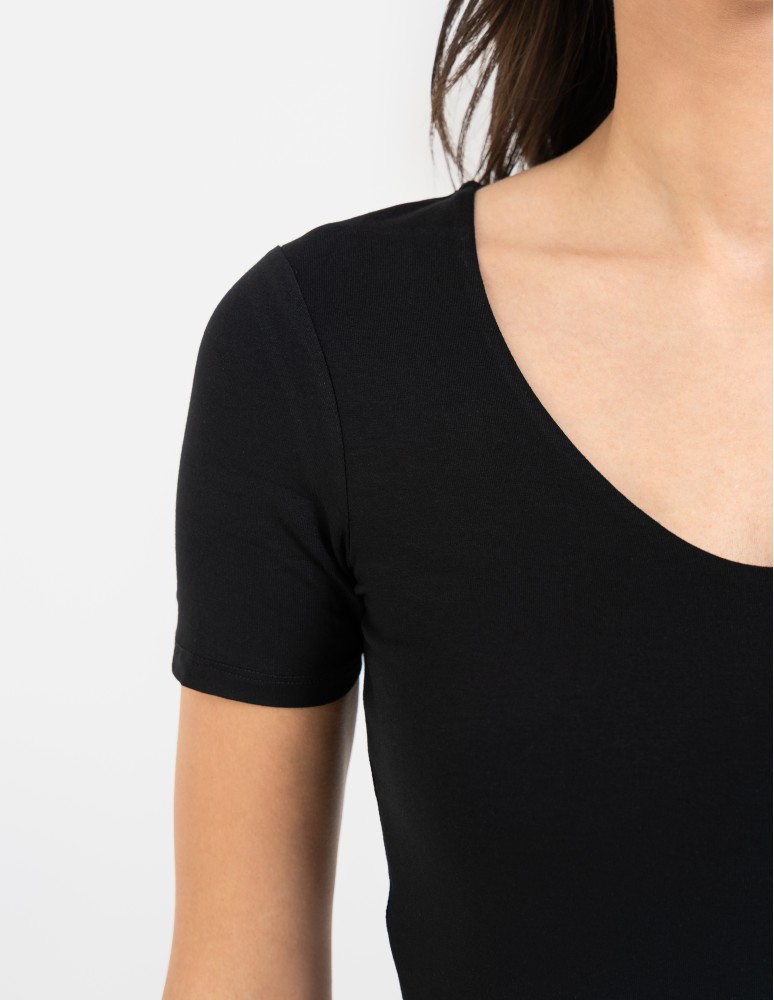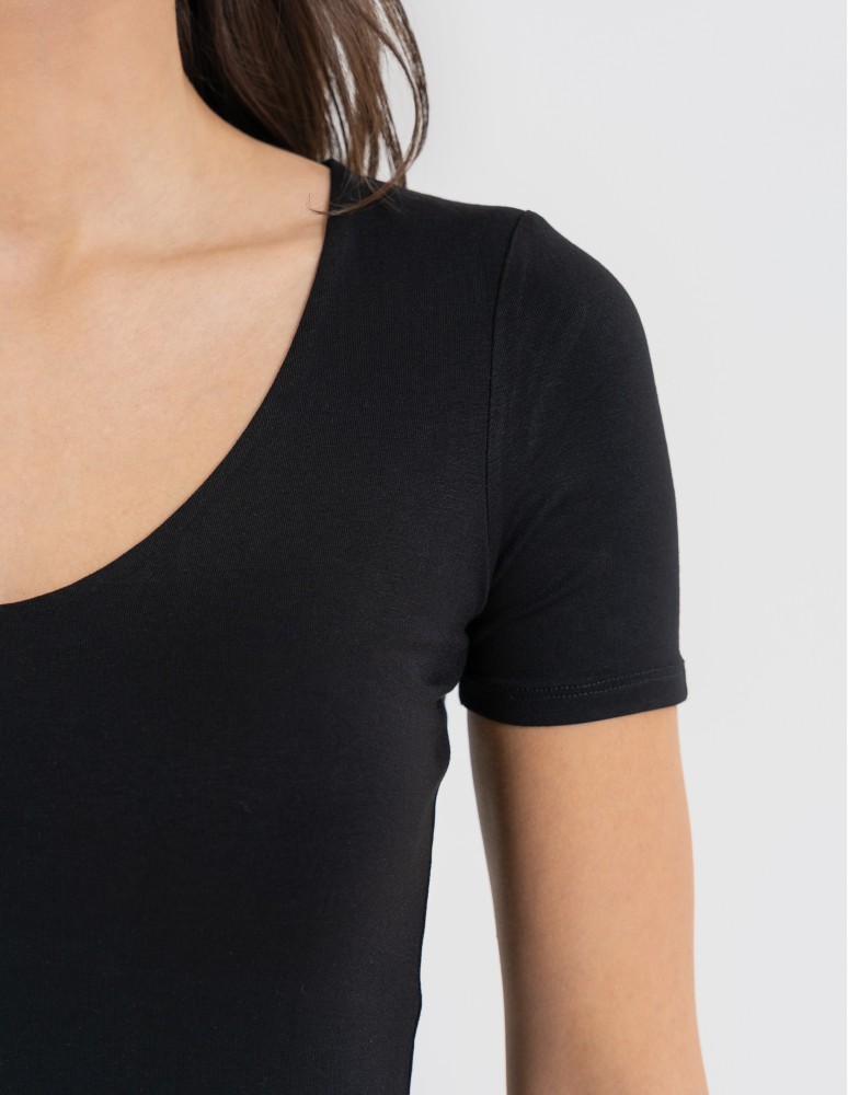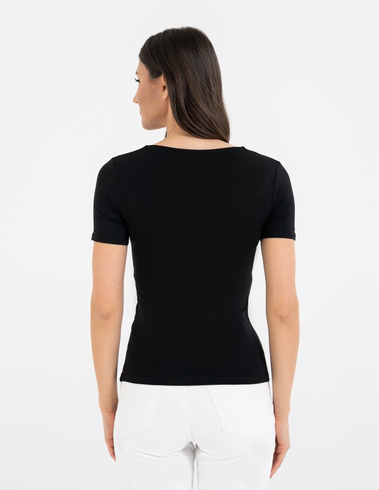 Bluzka damska z dekoltem w serek wiskozowa bez wzoru POMARAŃCZOWY