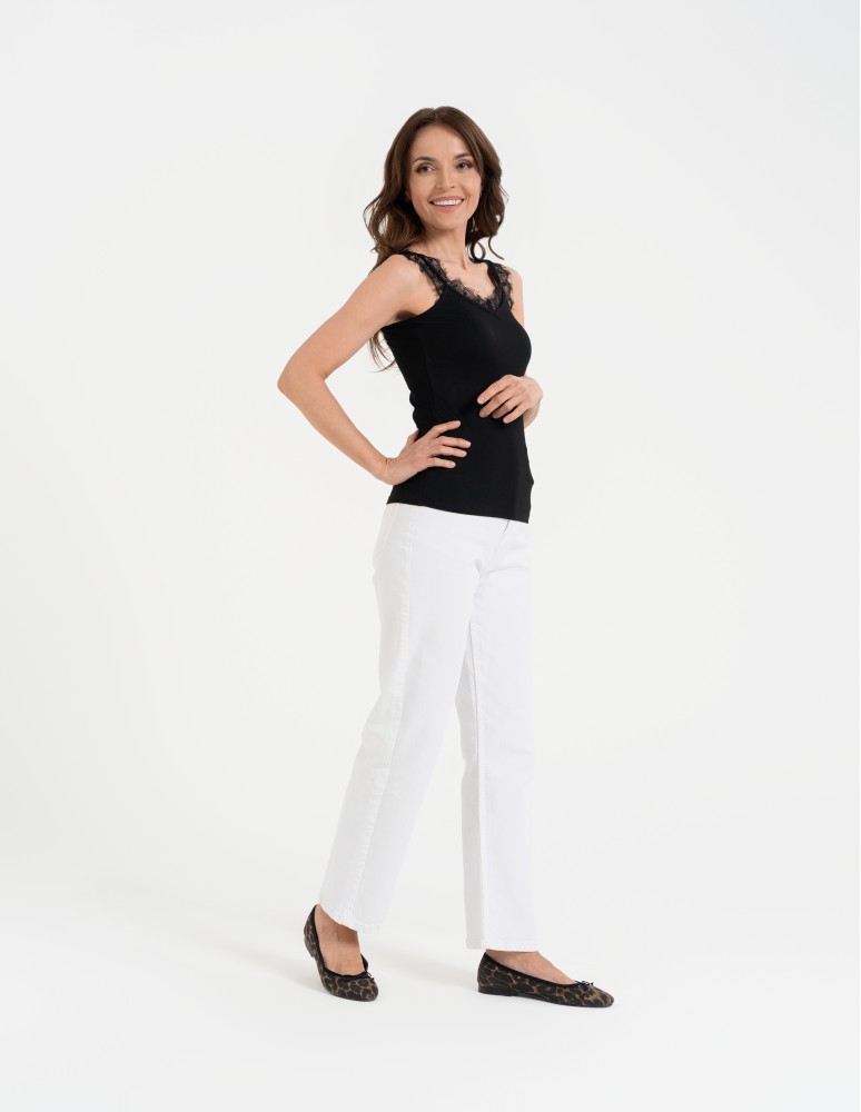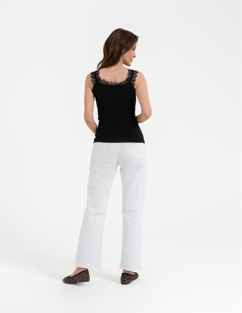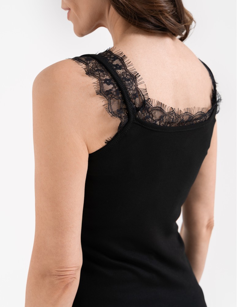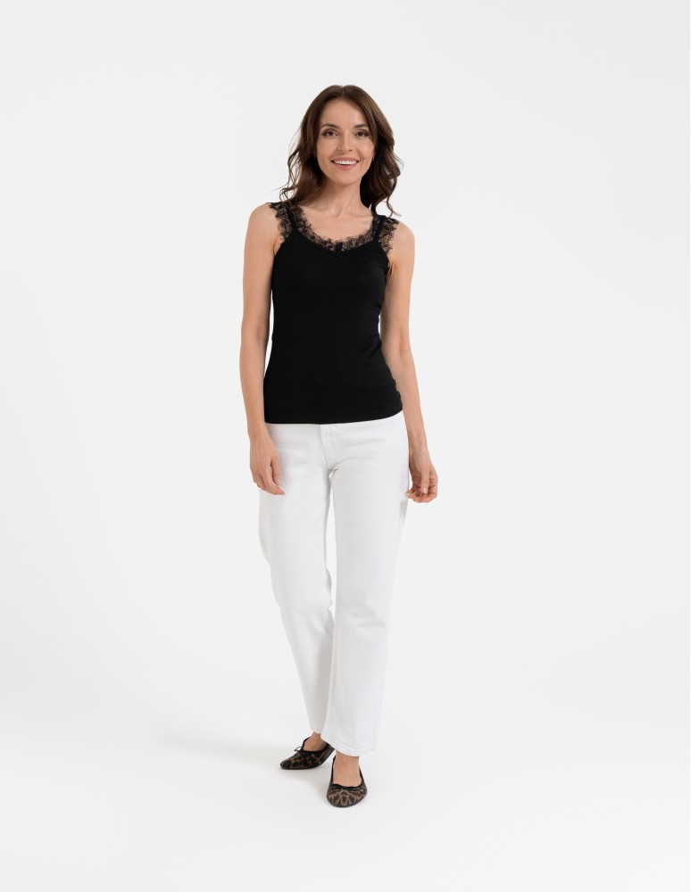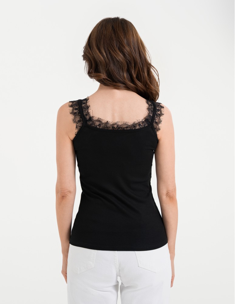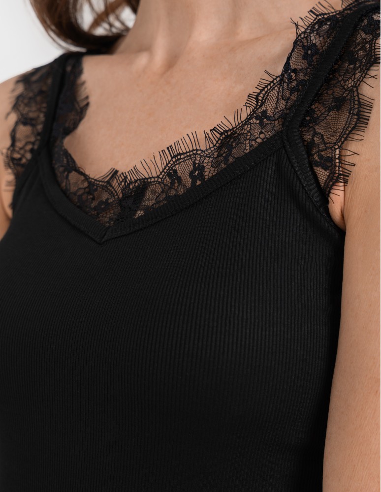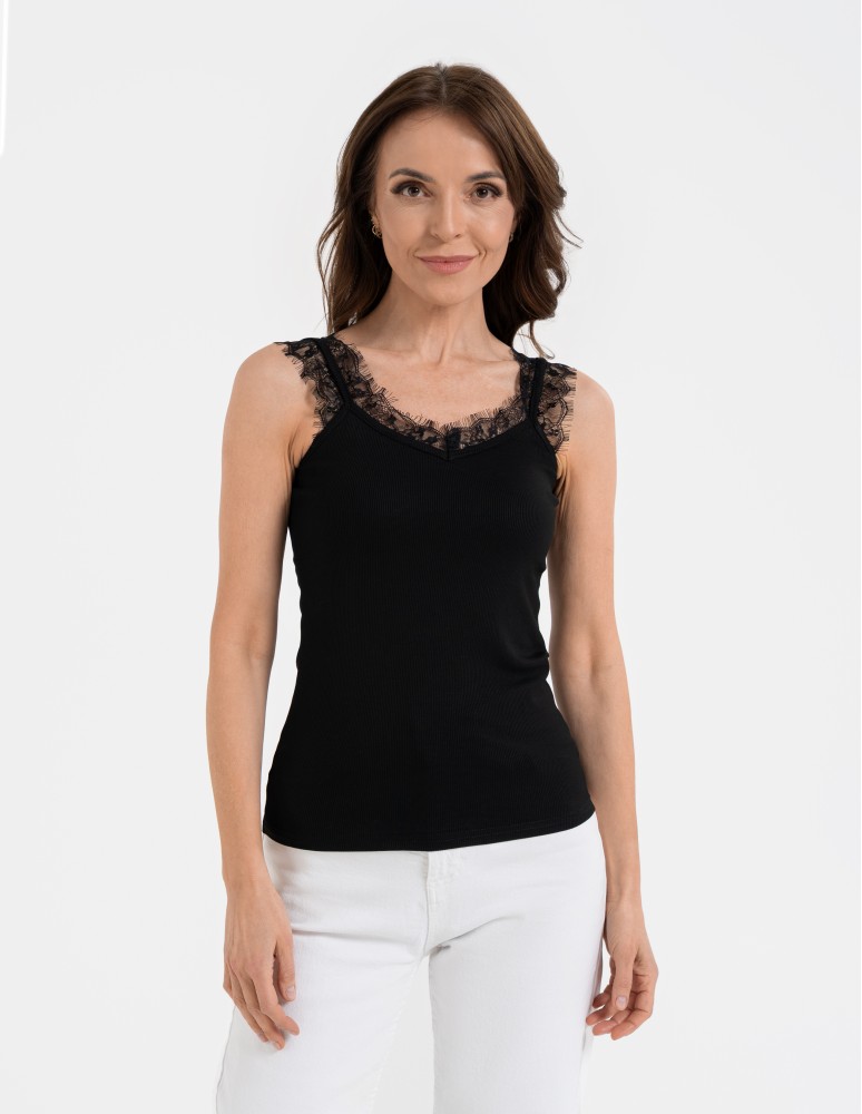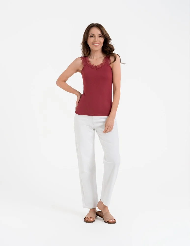 Koronkowy damski top na ramiączkach z prążkowanej wiskozy CZERWONY