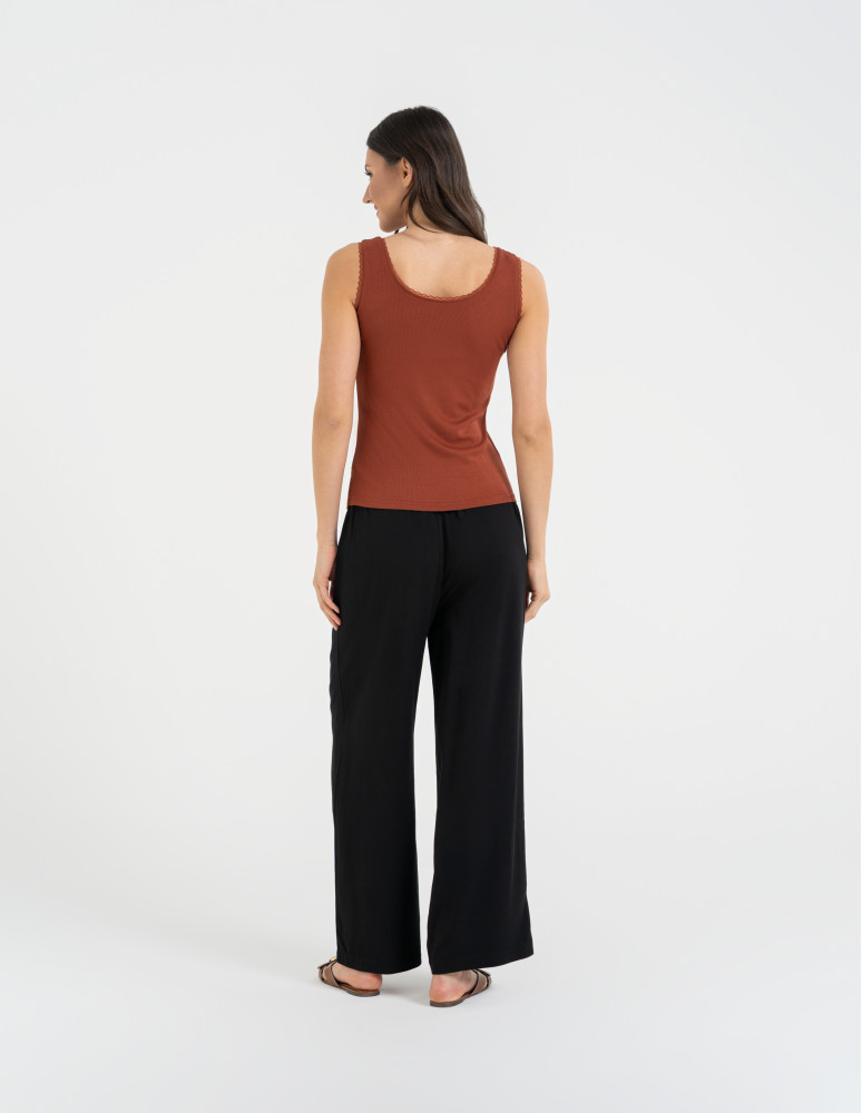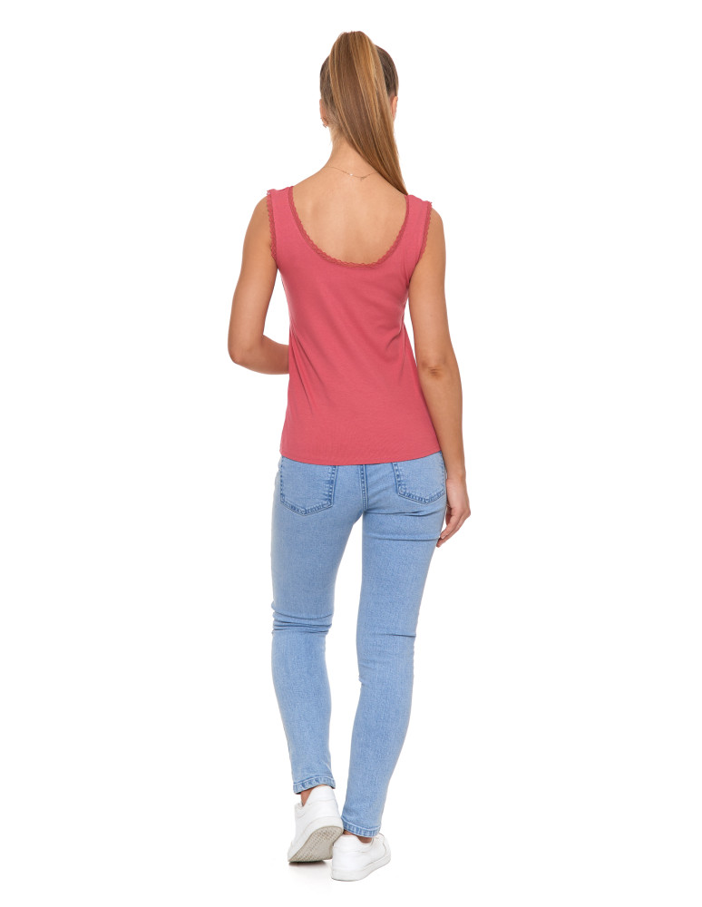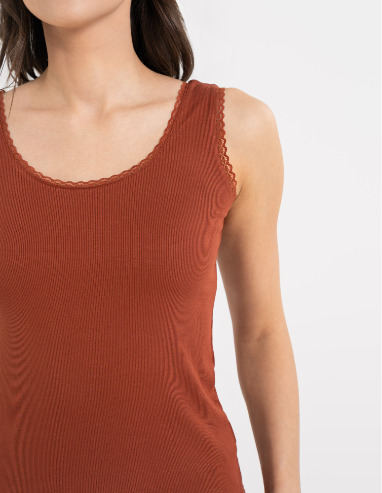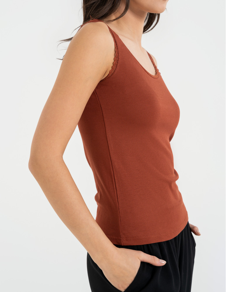 Top damski bez rękawów z koronkowym wykończeniem BRĄZOWY