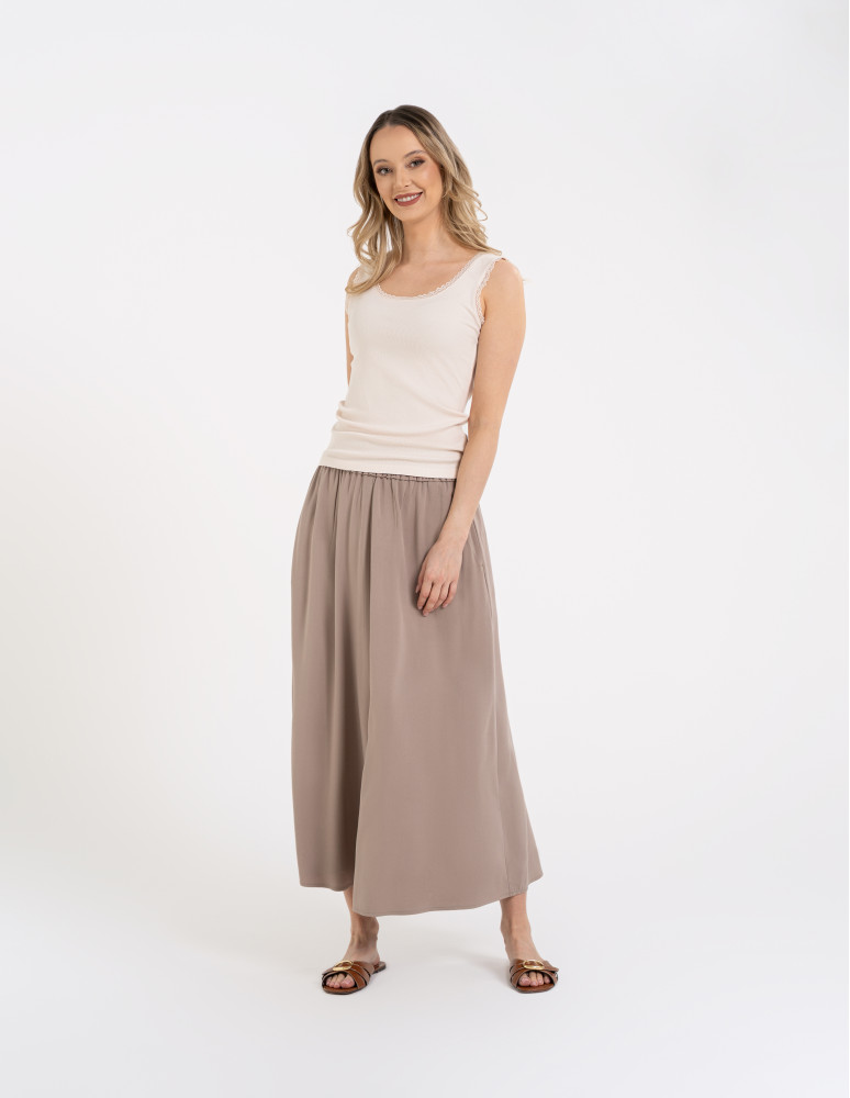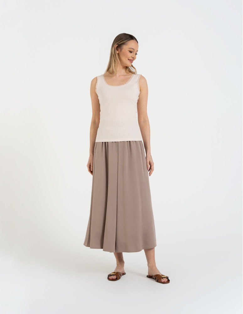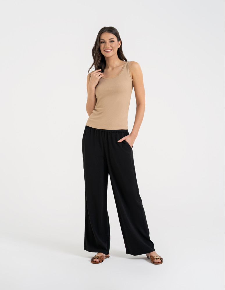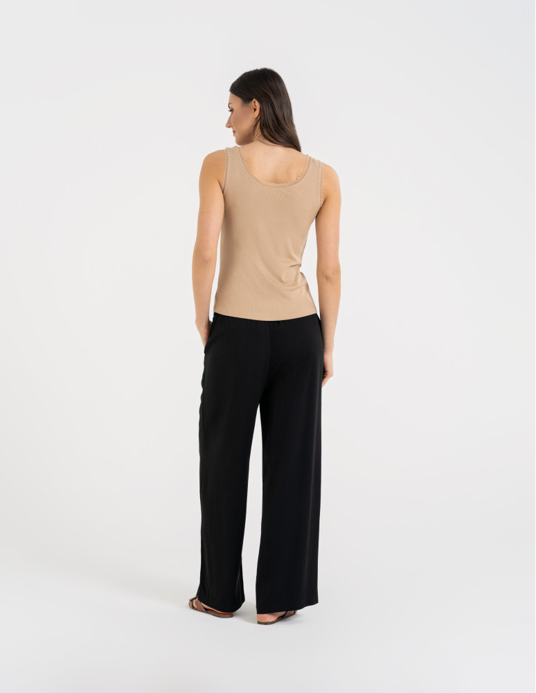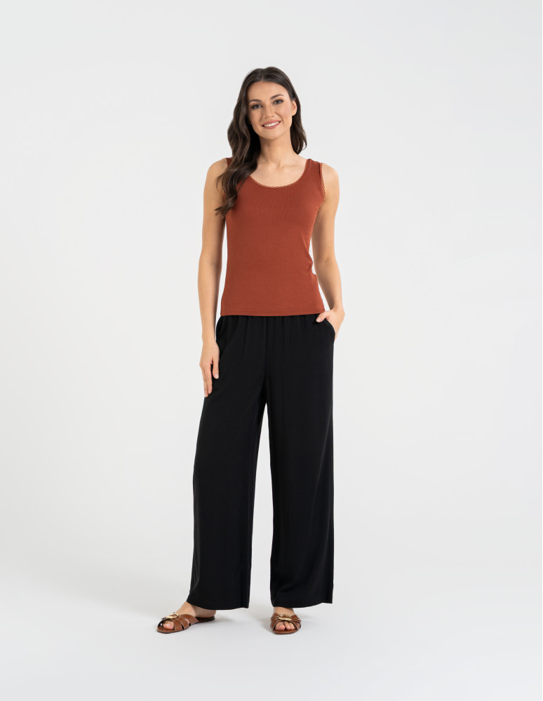 Top damski bez rękawów z koronkowym wykończeniem BRĄZOWY