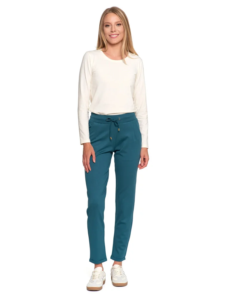 Damskie spodnie dresowe ze zwężaną nogawką ZIELONY
