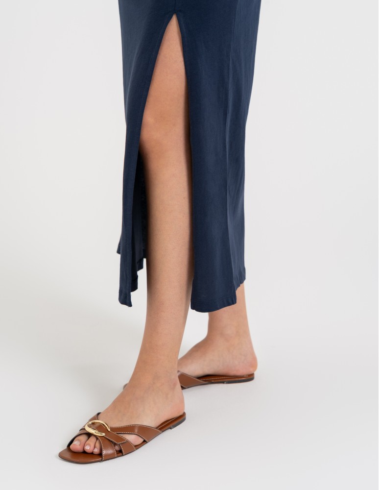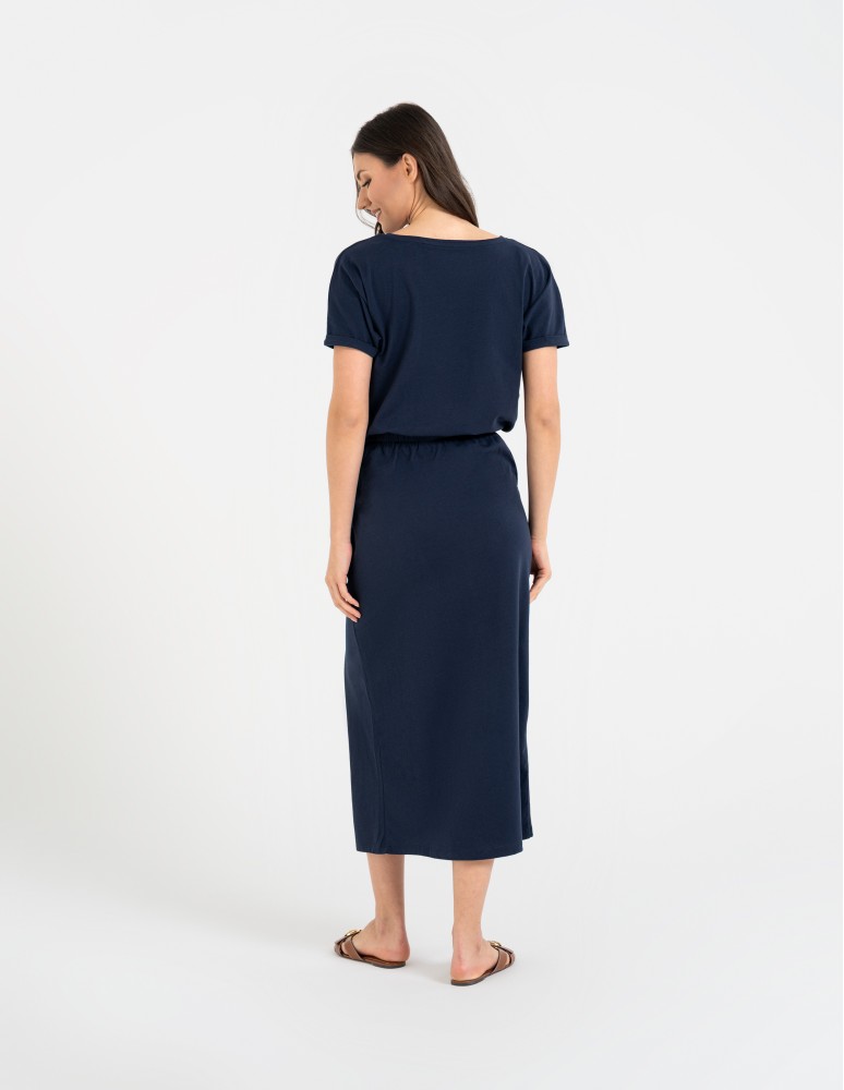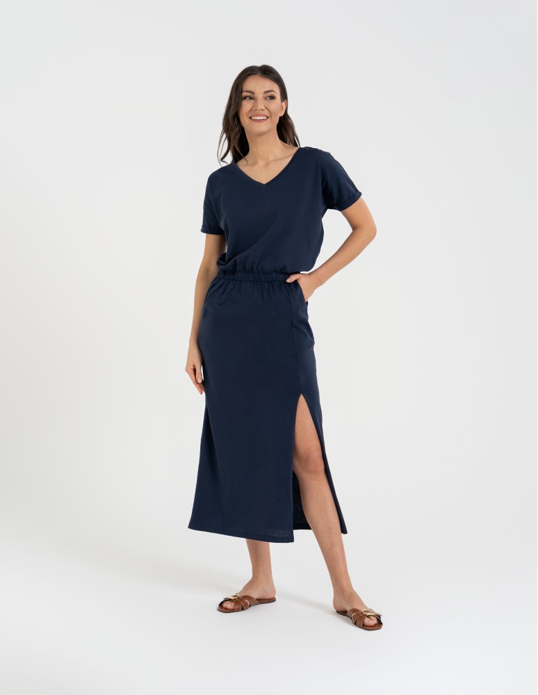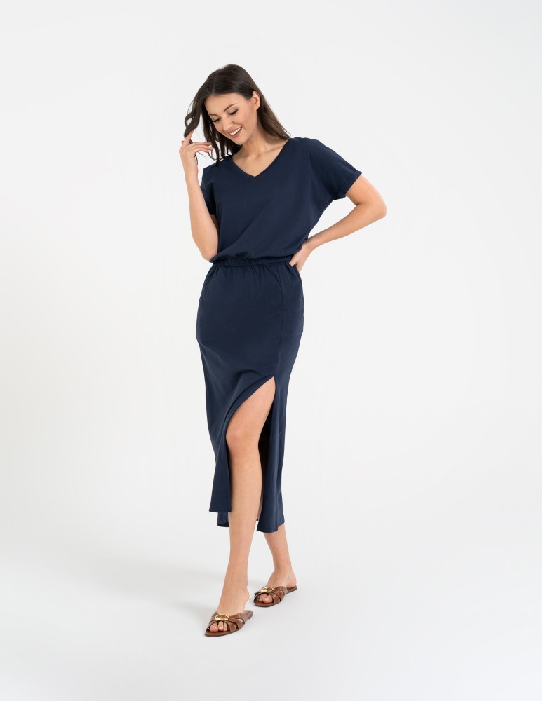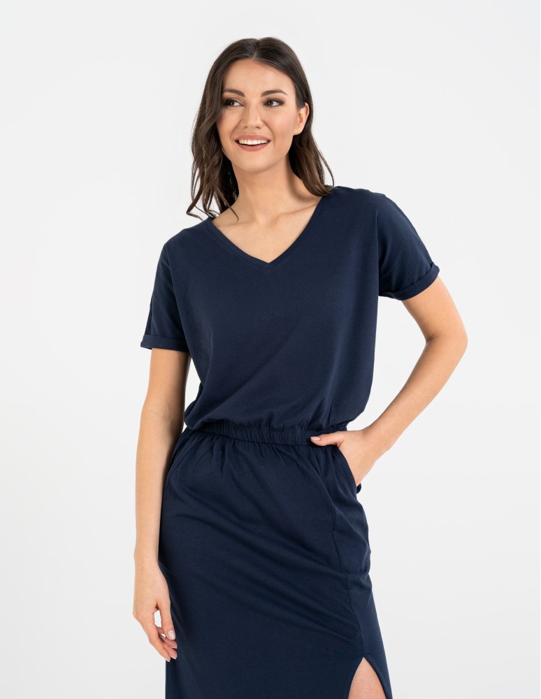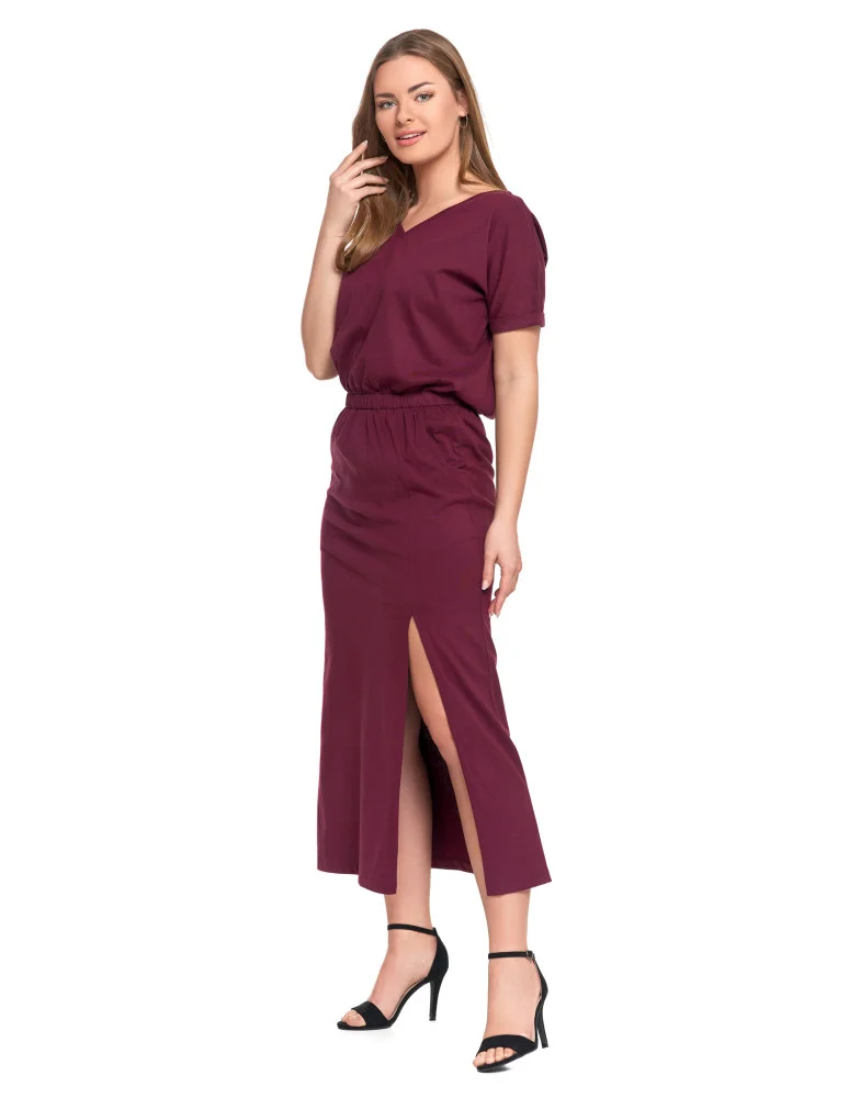 Sukienka damska maxi z rozcięciem i dekoltem V bawełniana FIOLETOWY