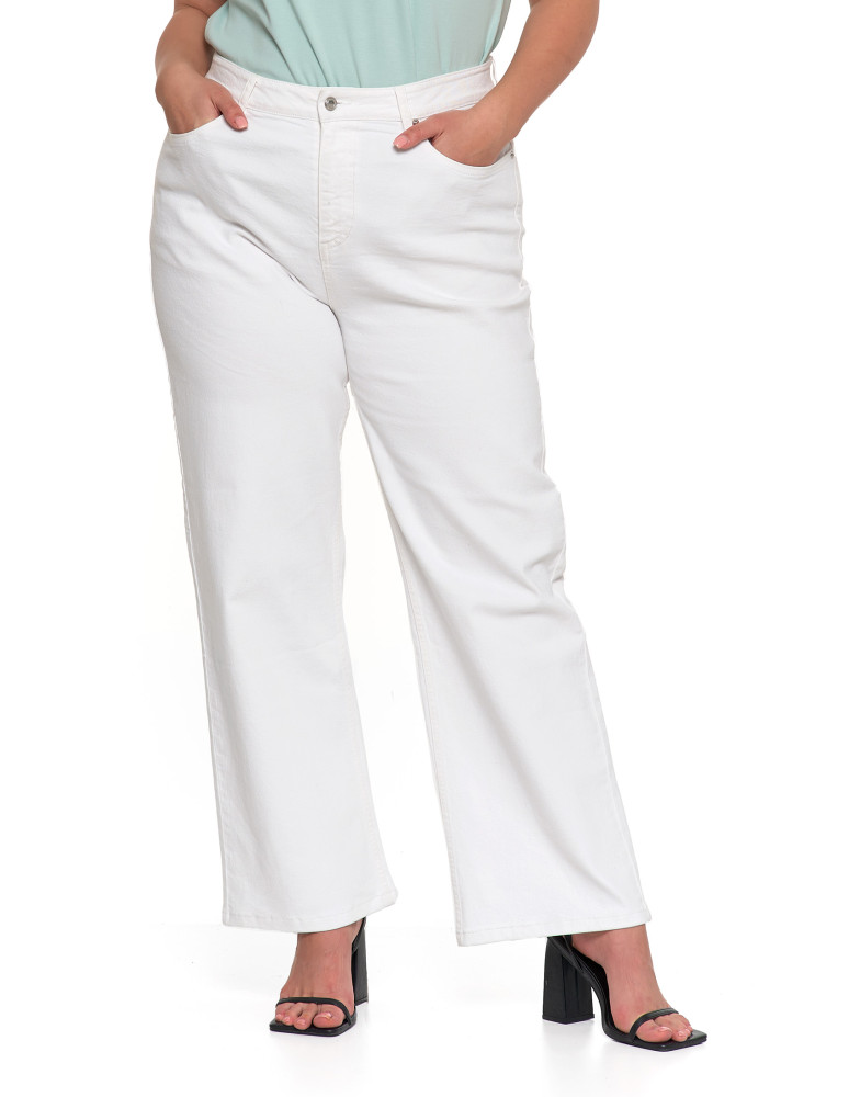 Damskie jeansy z wysokim stanem i prostą nogawką BIAŁY