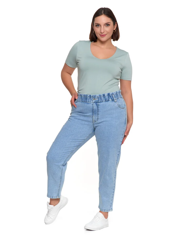 Spodnie damskie jeansy paperbag z wysokim stanem JASNY NIEBIESKI