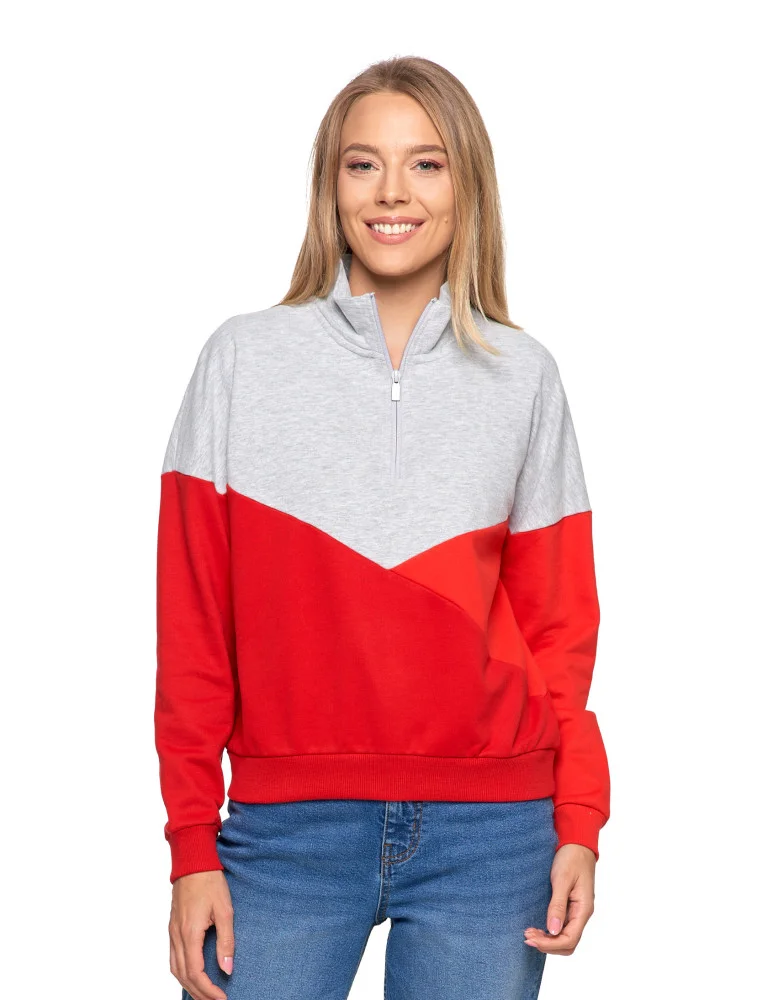 Bluza dresowa damska z zamkiem i stójką CZERWONY