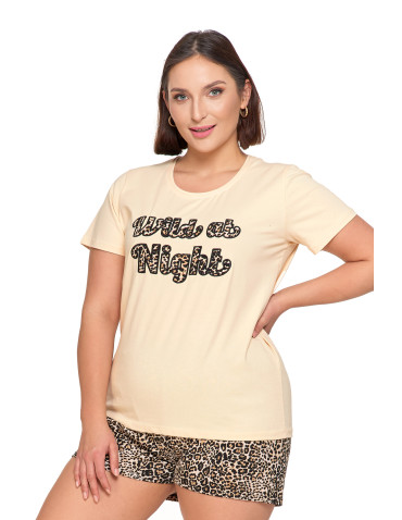 Krótka damska piżama w panterkę bawełniana Plus Size BEŻOWY