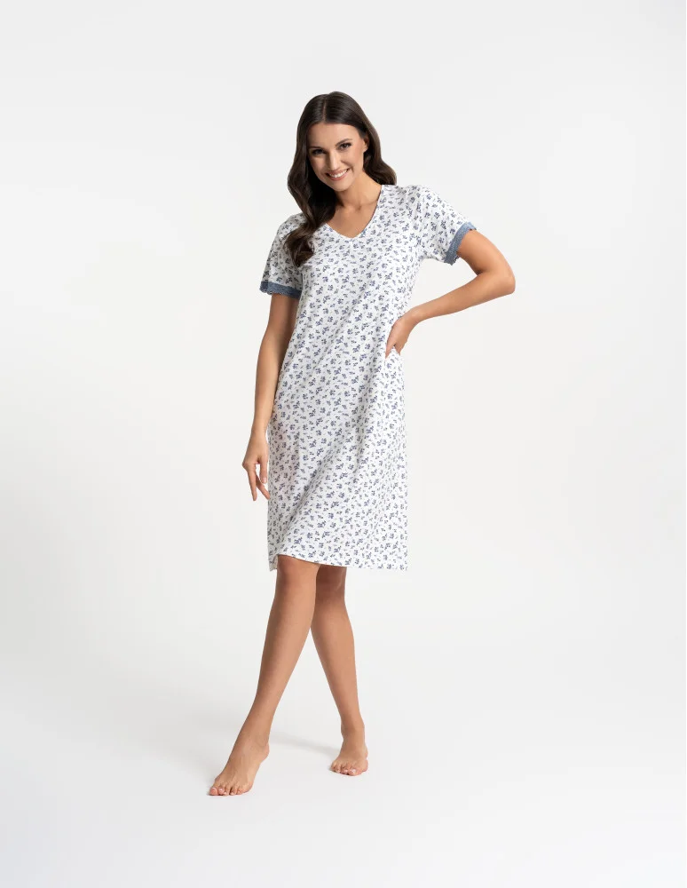 Damska koszula nocna z bawełny w kwiatowy wzór BIAŁY