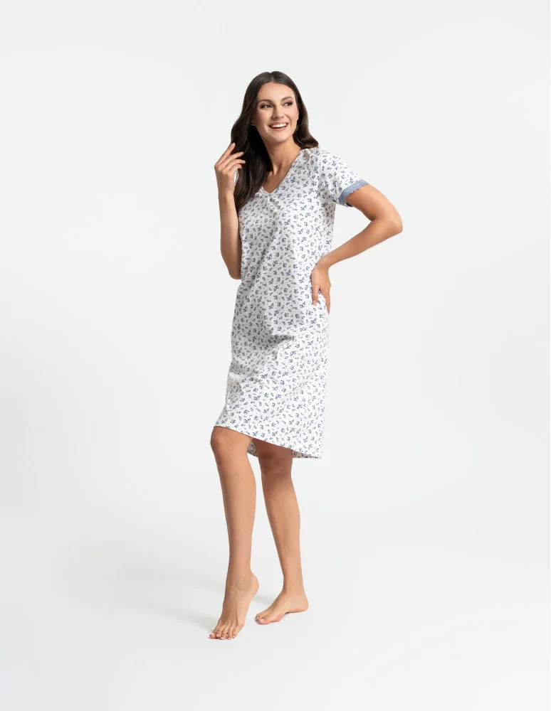 Damska koszula nocna Plus Size z bawełny w kwiatowy wzór BIAŁY