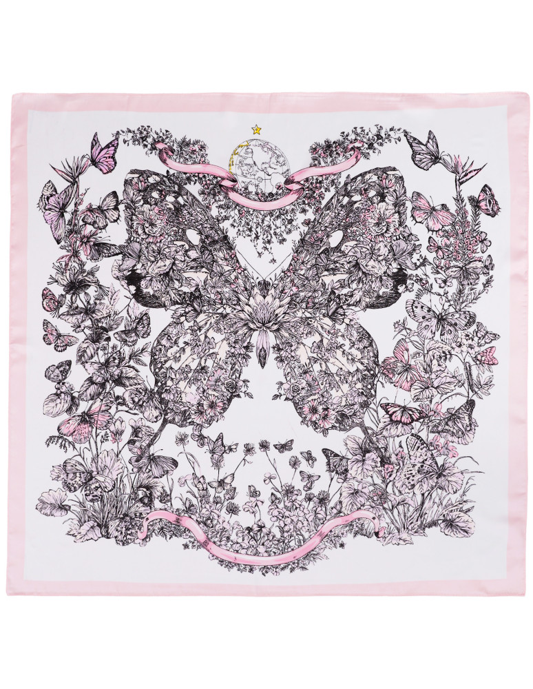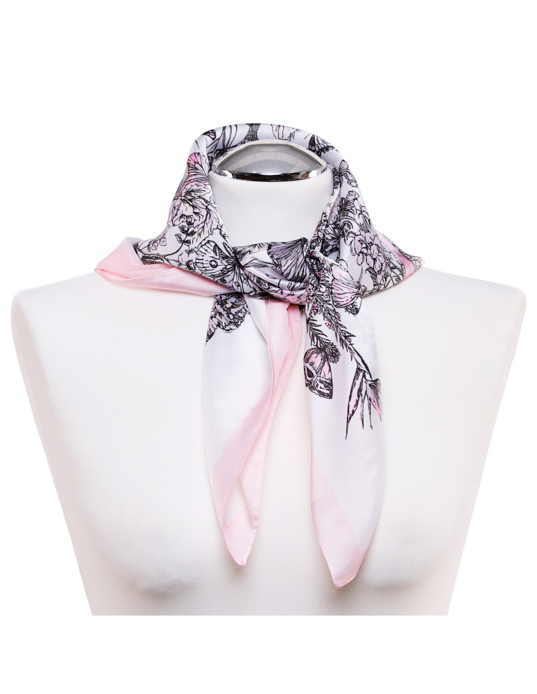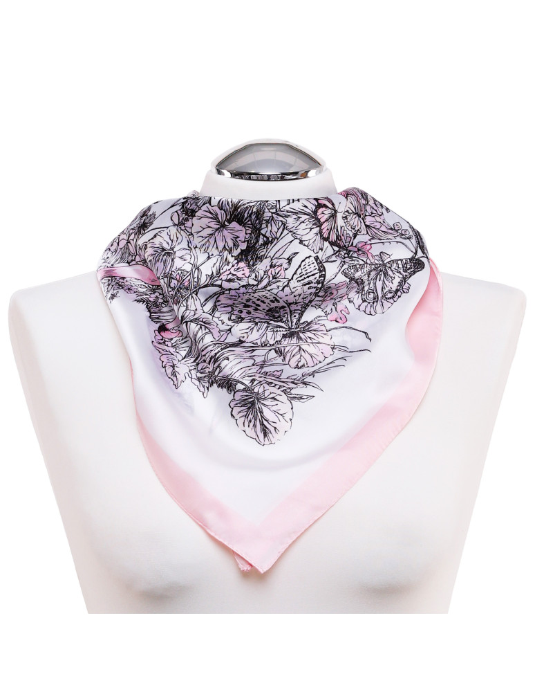 Damska apaszka w pastelowe kwiaty i motyle NIEBIESKI