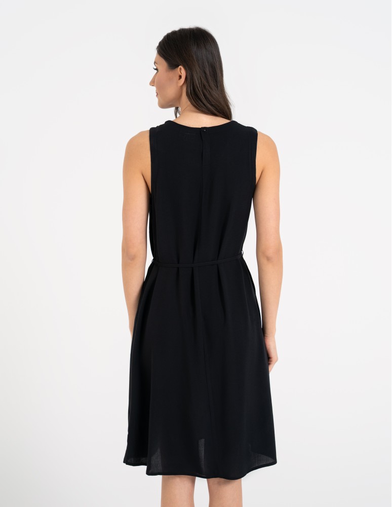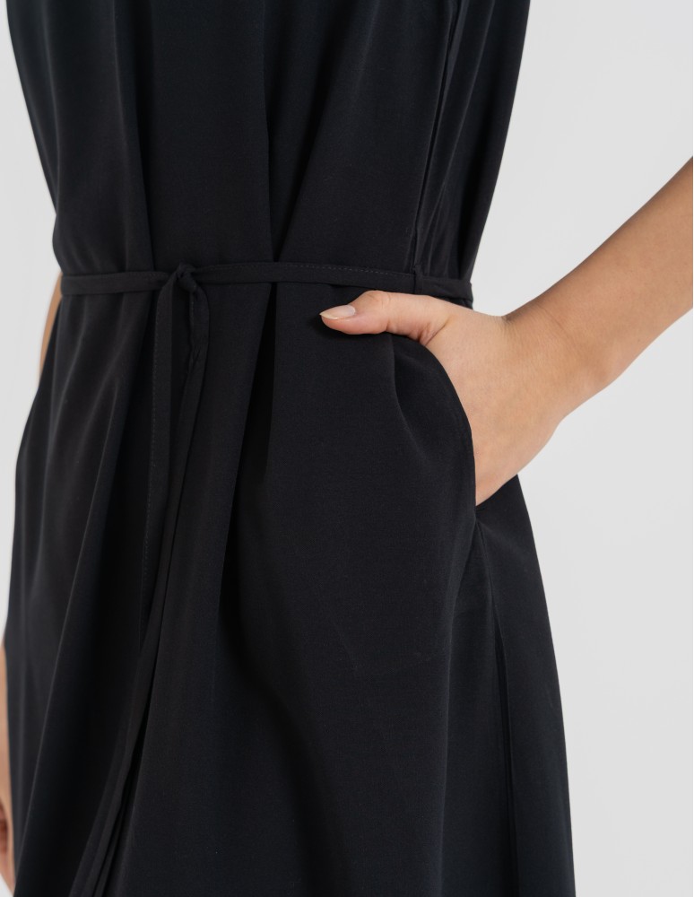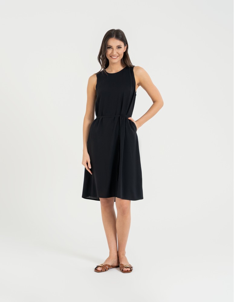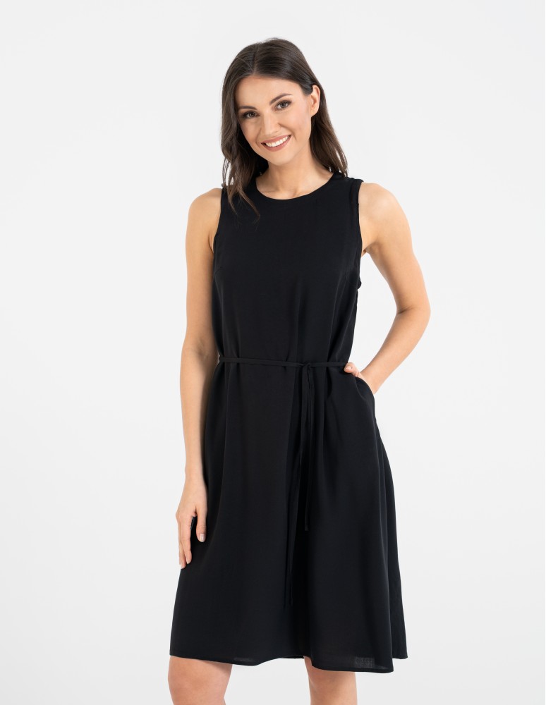 Sukienka damska wiskozowa z wiązaniem w talii i kieszeniami ZIELONY