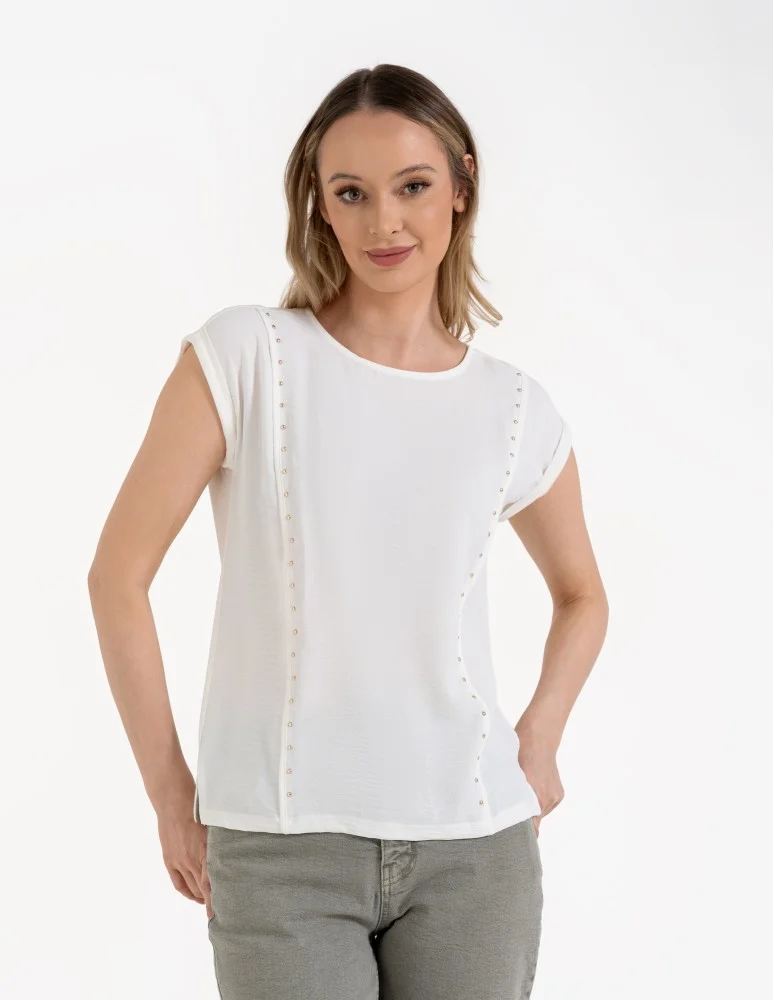 Elegancka bluzka damska z dekoracyjnymi dżetami BIAŁY