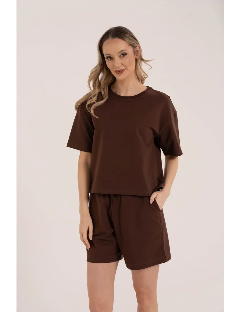 T-shirt damski o luźnym kroju z napisami BRĄZOWY