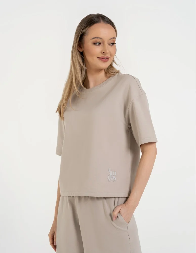 T-shirt damski o luźnym kroju z napisami SZARY