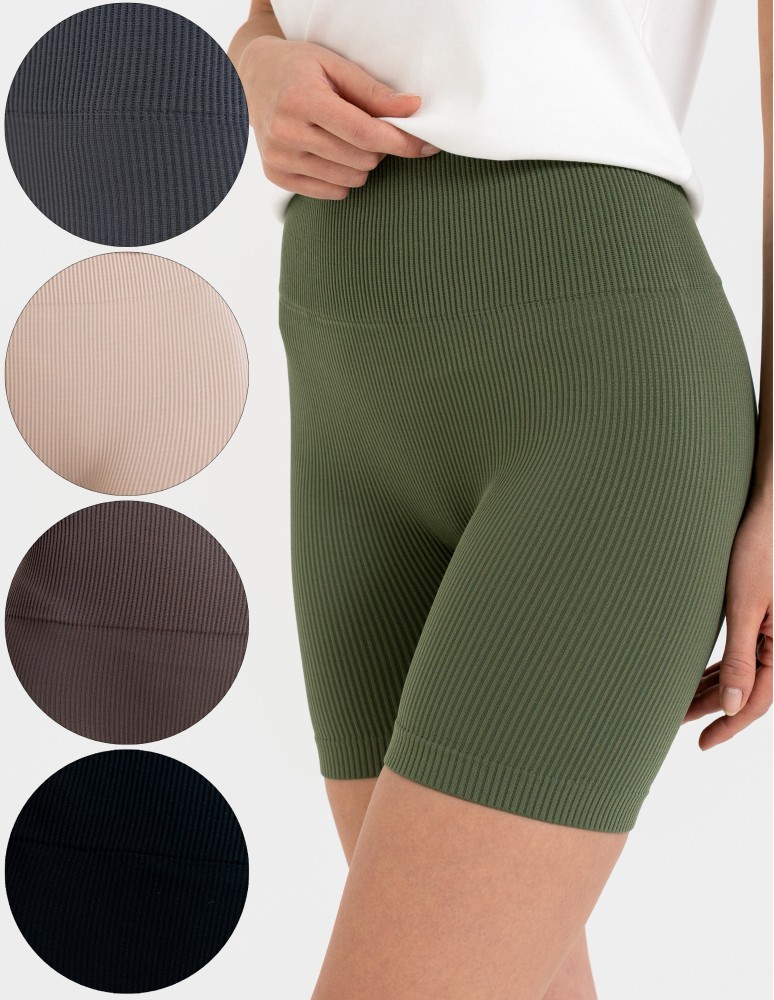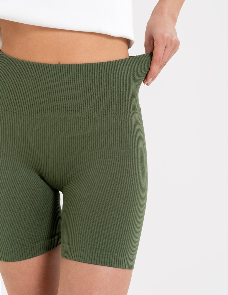 Bezszwowe legginsy kolarki damskie z wysokim stanem w prążek KHAKI