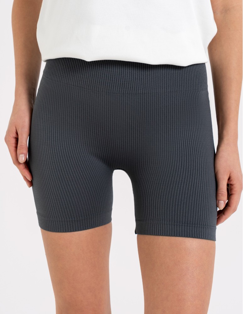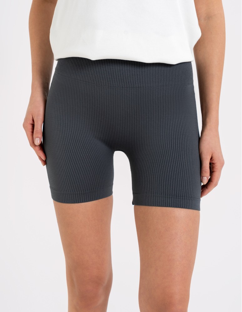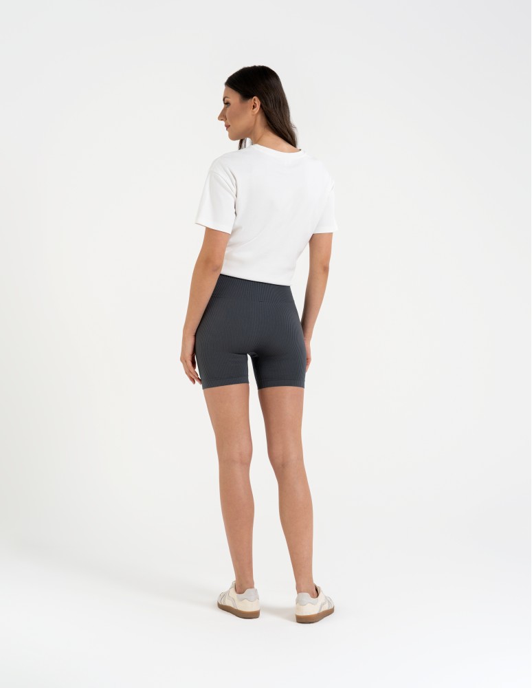 Model wykonano z elastycznego materiału o prążkowanej strukturze, który dobrze dopasowuje się do ciała i wspiera komfort noszenia. Tkanina jest miękka, przyjemna w dotyku oraz rozciągliwa, dzięki czemu kolarki nie krępują ruchów nawet podczas intensywnych aktywności.