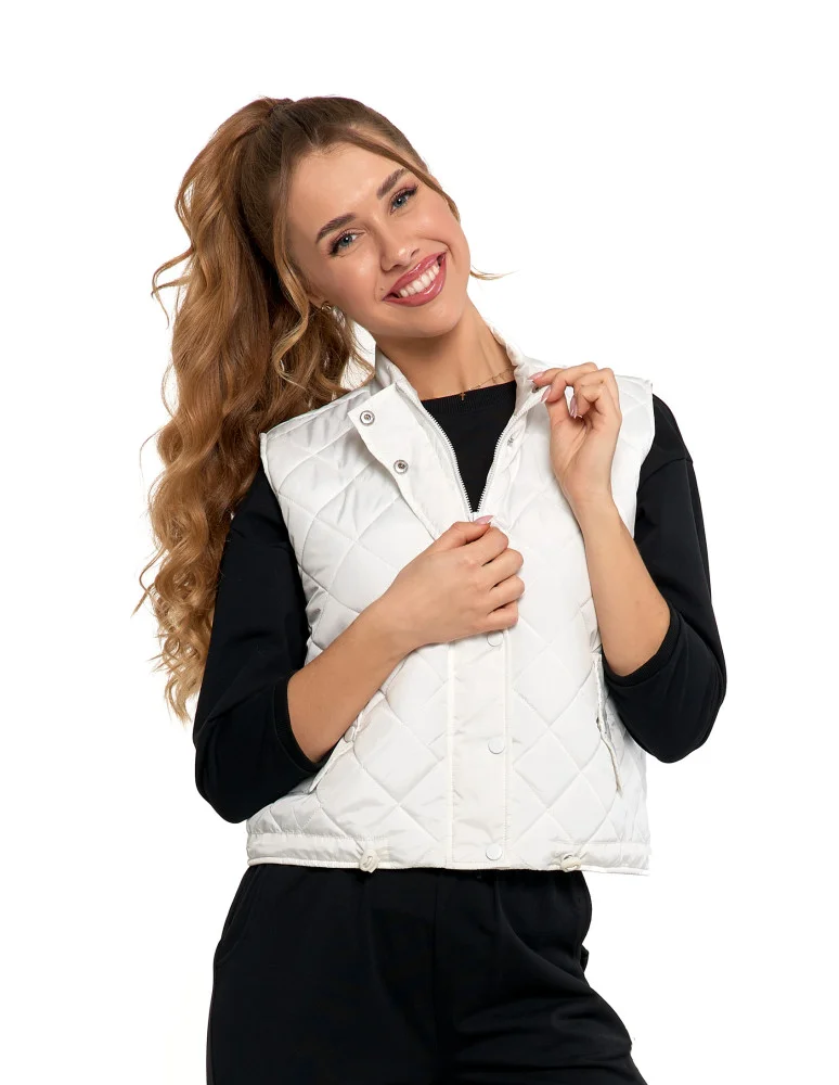 Damska kamizelka pikowana przejściowa krótka BIAŁY
