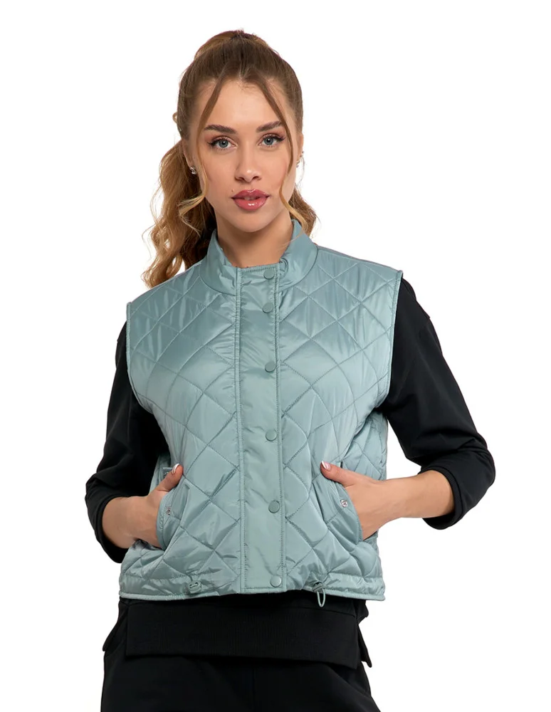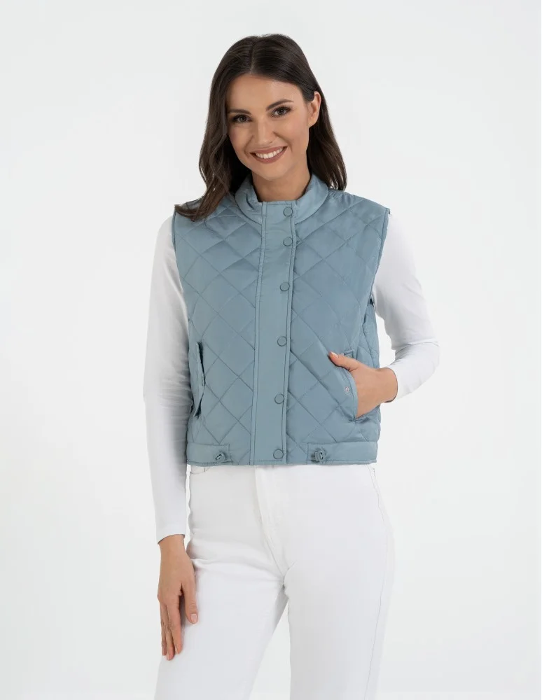 Damska kamizelka pikowana przejściowa krótka NIEBIESKI