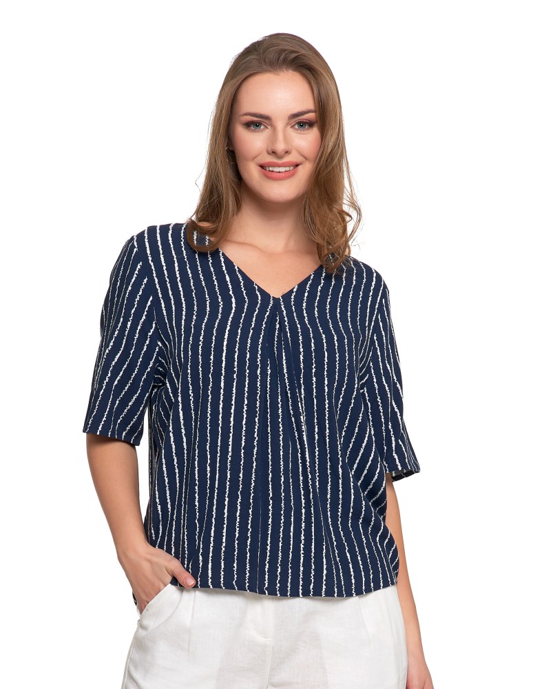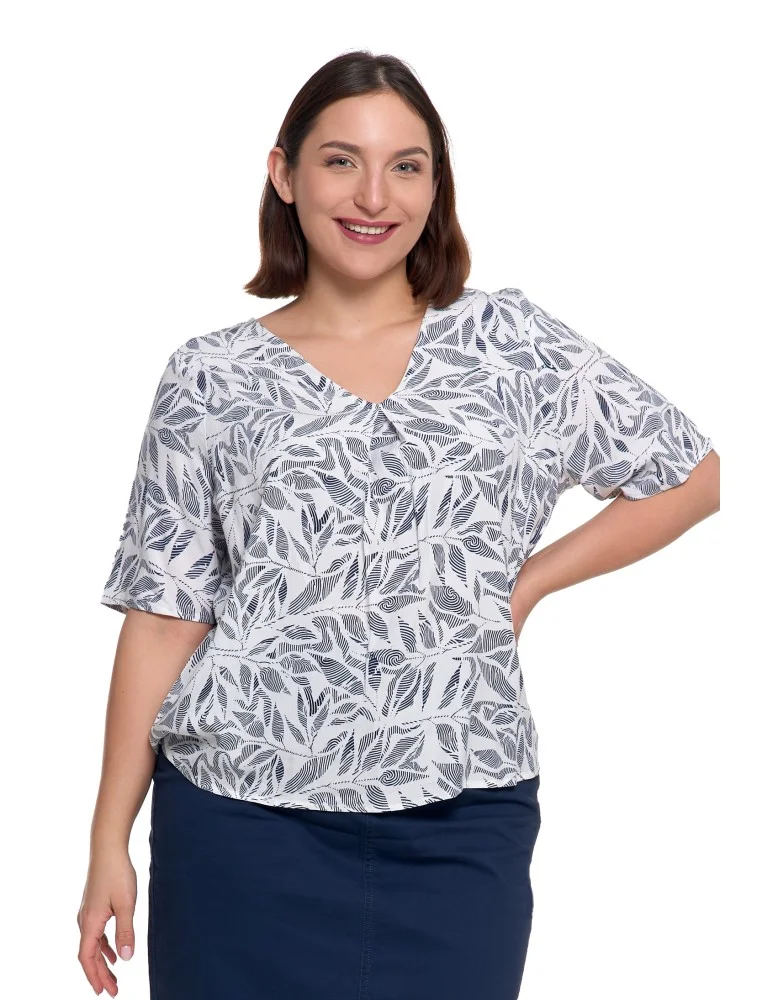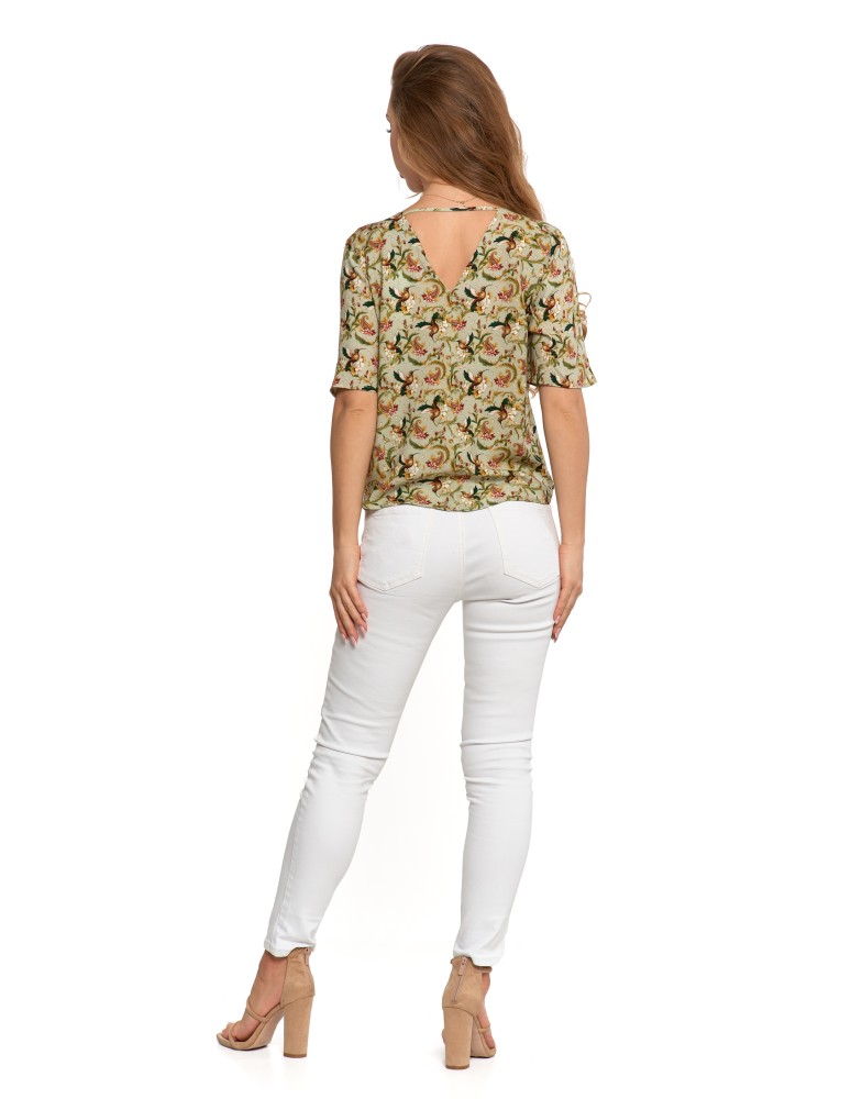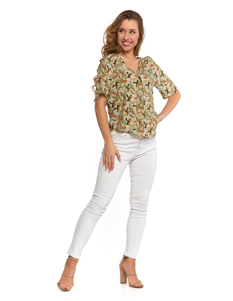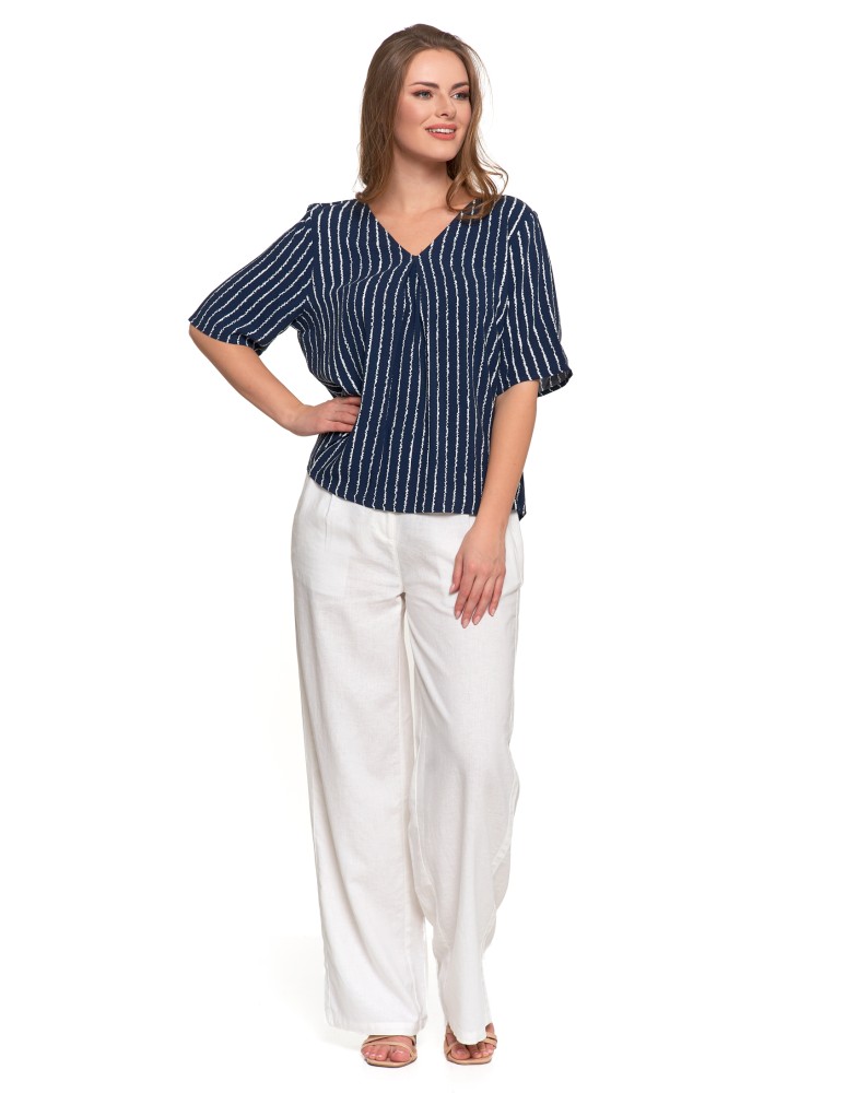 Bluzka damska z wiskozy z dekoltem w serek BIAŁY