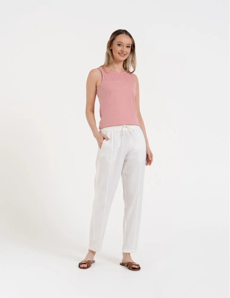Spodnie damskie lniane z gumką w pasie BIAŁY