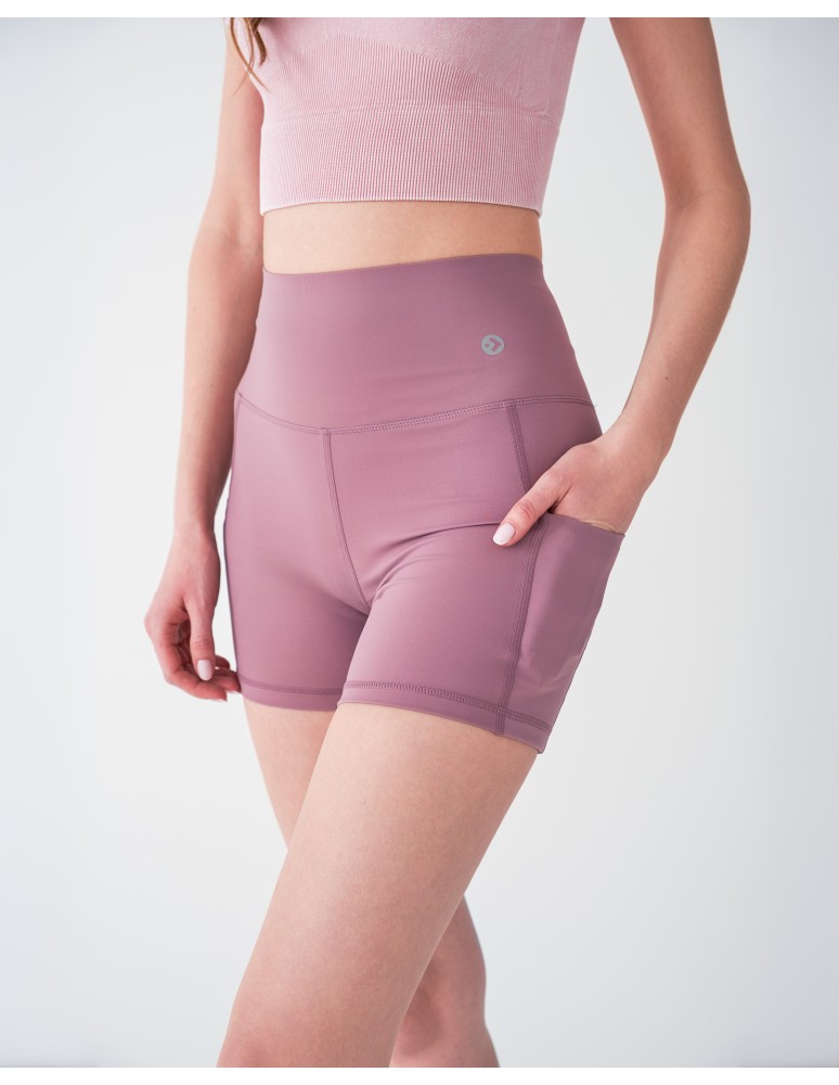 Szorty sportowe damskie z wysokim stanem i kieszeniami CZARNY