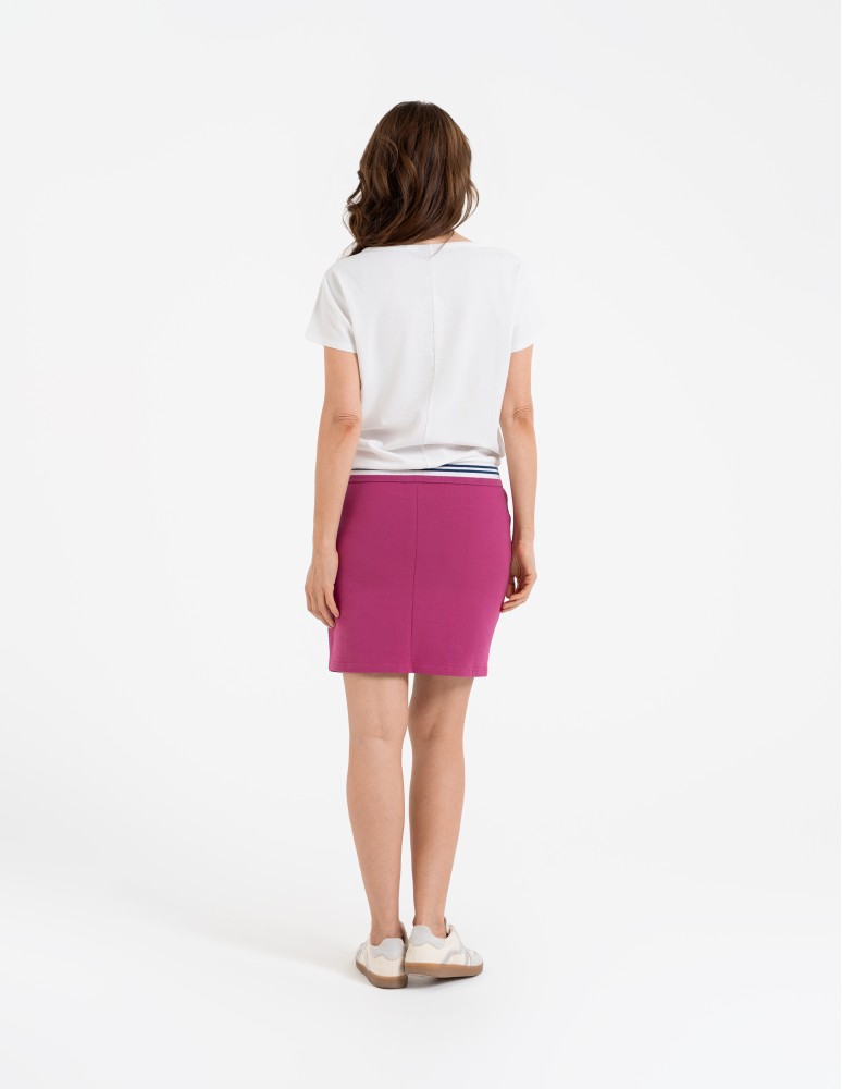 Konstrukcja oparta na elastycznych ściągaczach pozwala na idealne ułożenie materiału na sylwetce, zapobiegając przemieszczaniu się odzieży podczas ruchu. Krótkie rękawy o klasycznym kroju zapewniają pełną swobodę, a szeroka guma na dole bluzki pozwala na subtelne zbluzowanie materiału. Dopracowane wykończenie wewnętrznych szwów eliminuje ryzyko podrażnień, dbając o stabilne i wygodne dopasowanie.