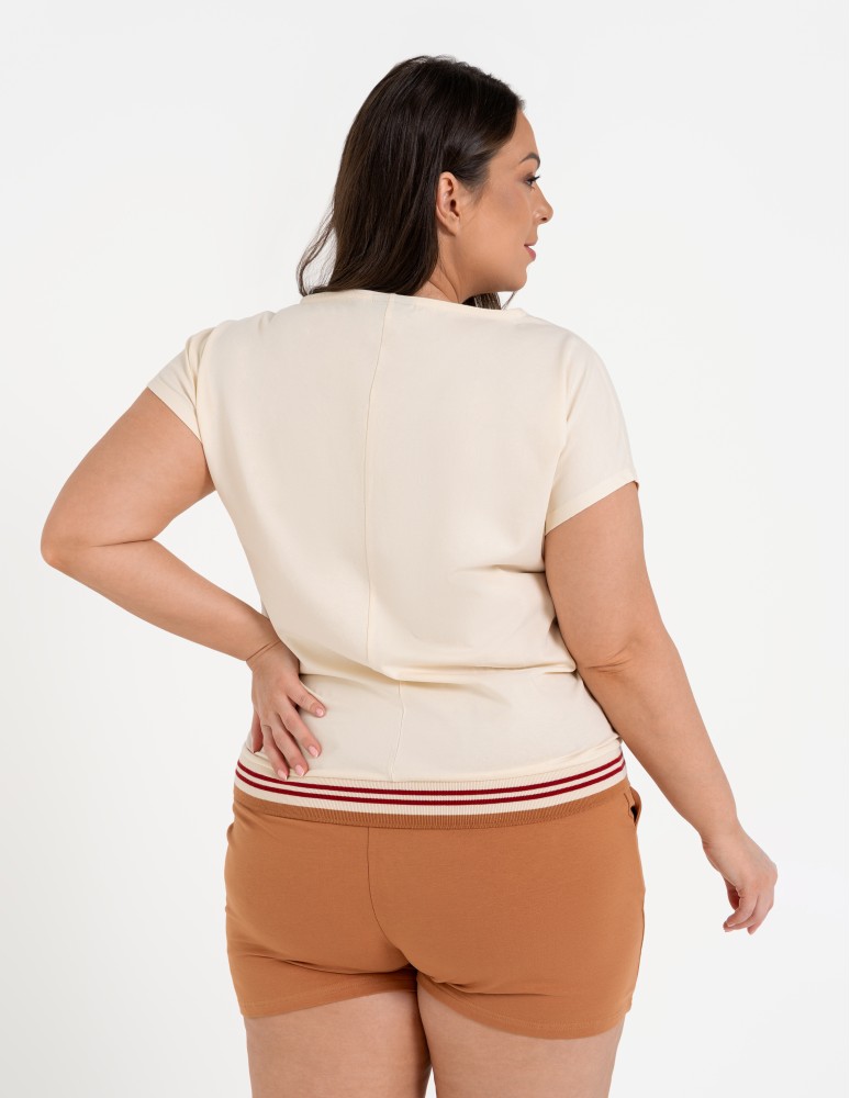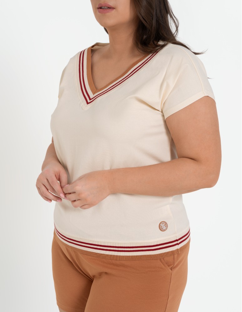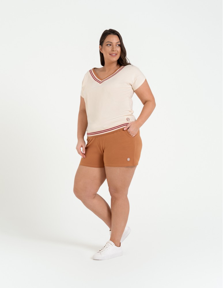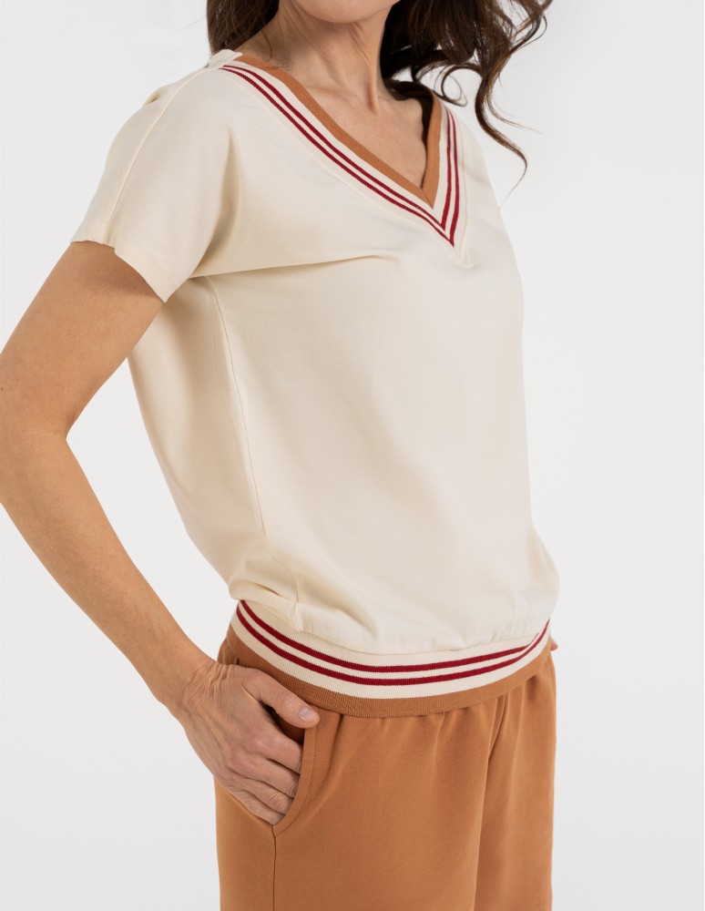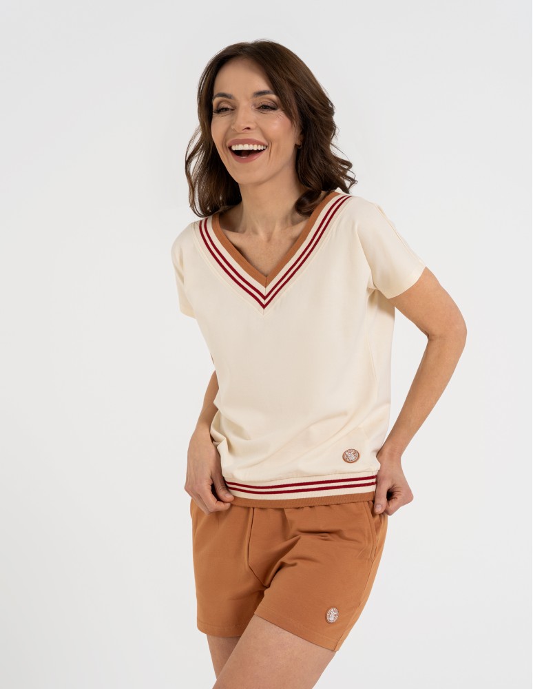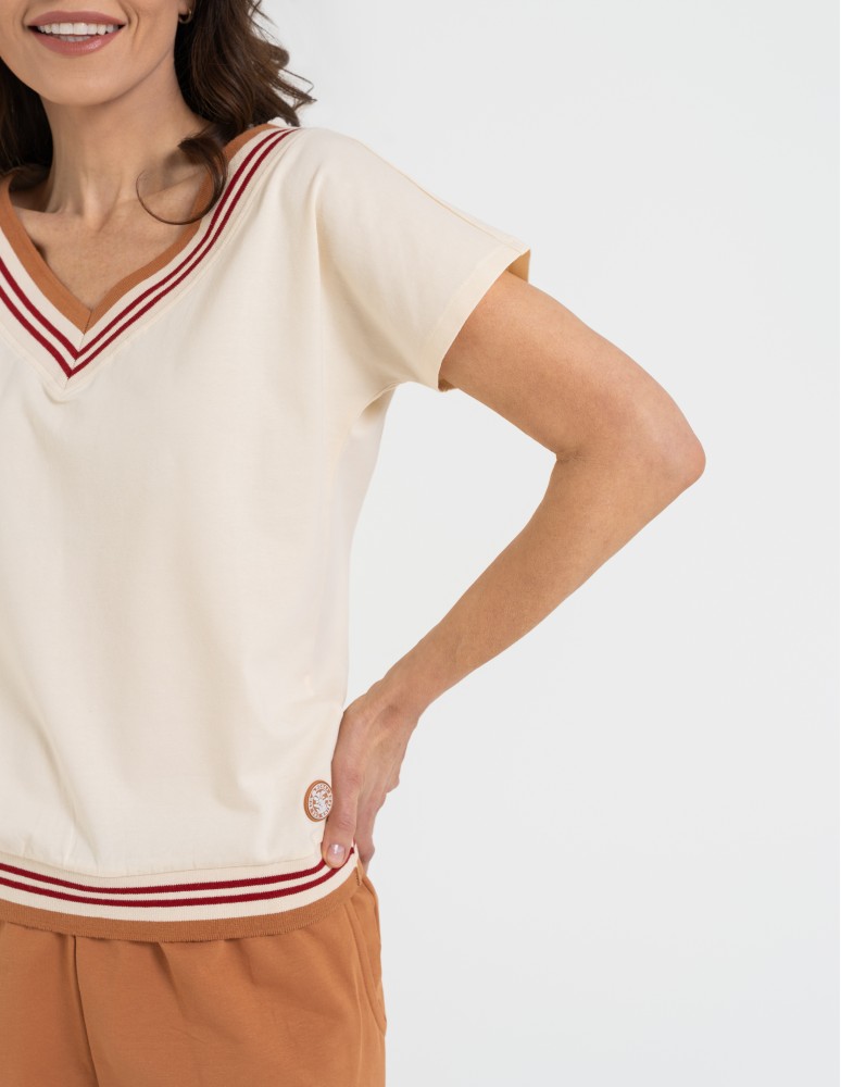 Bluzka damska z dekoltem V i ściągaczami w stylu sportowym POMARAŃCZOWY