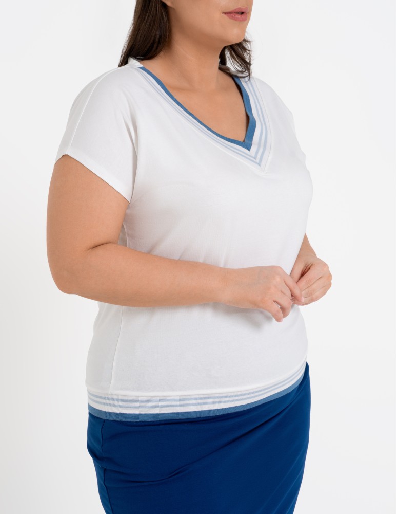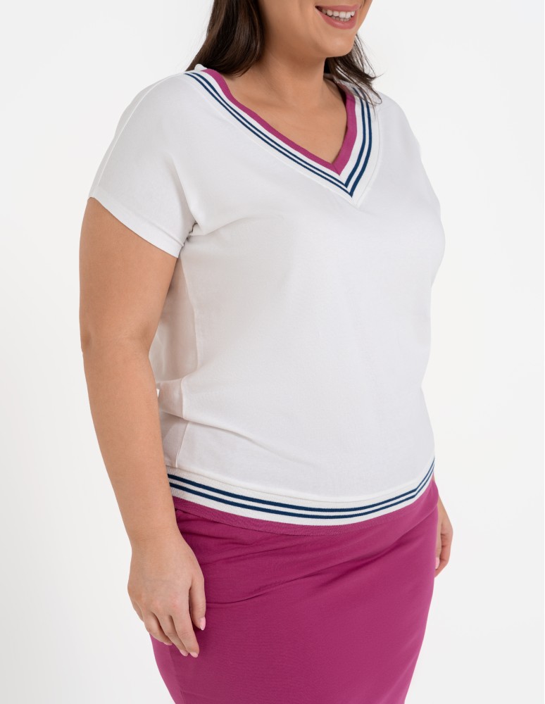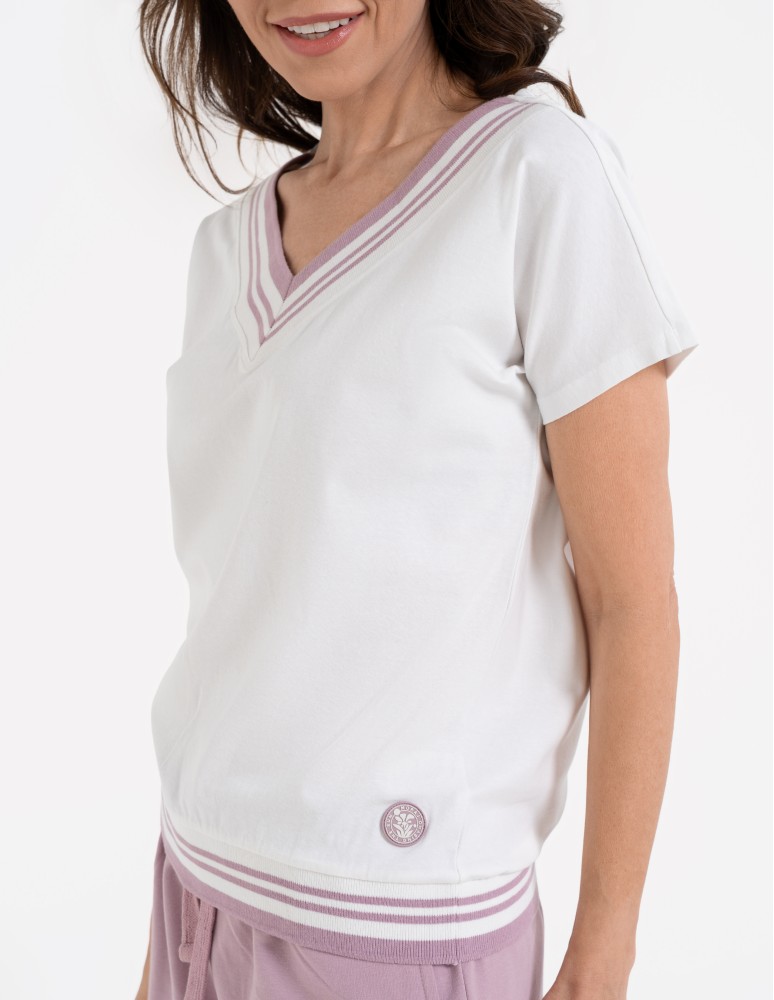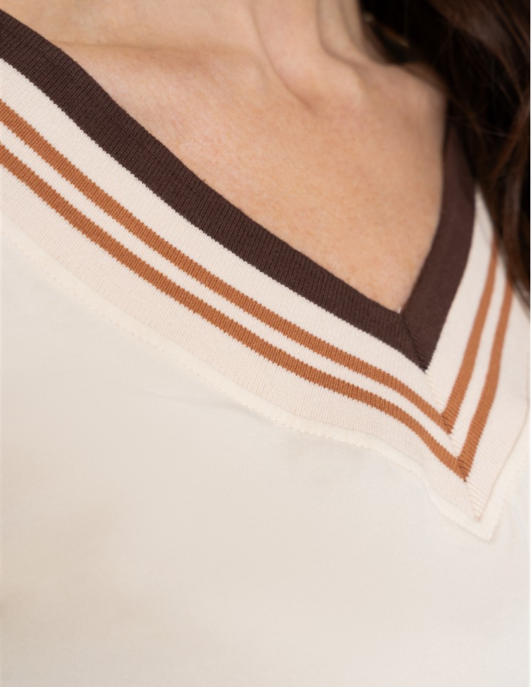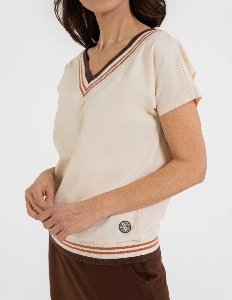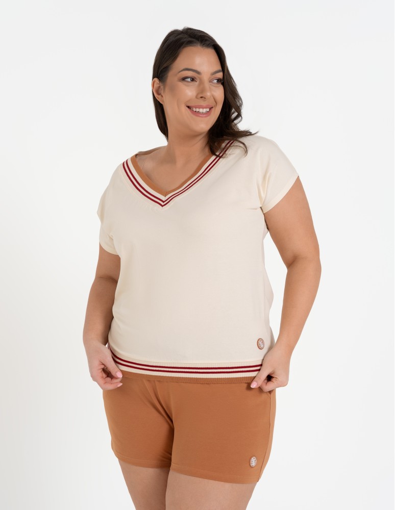 Bluzka damska z dekoltem V i ściągaczami w stylu sportowym POMARAŃCZOWY