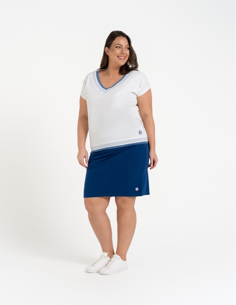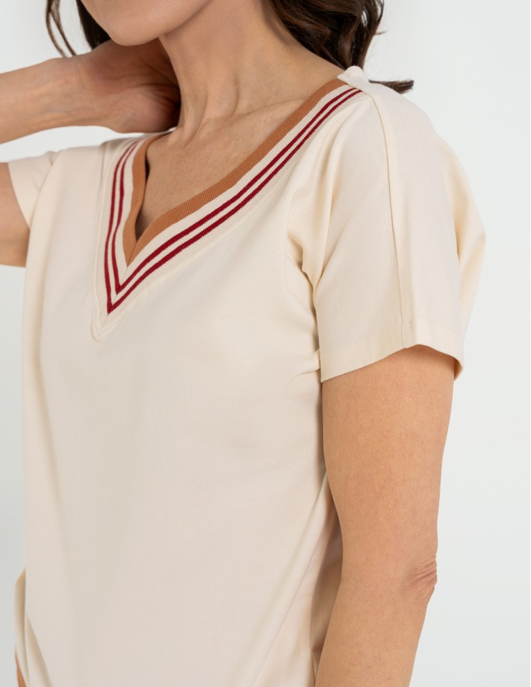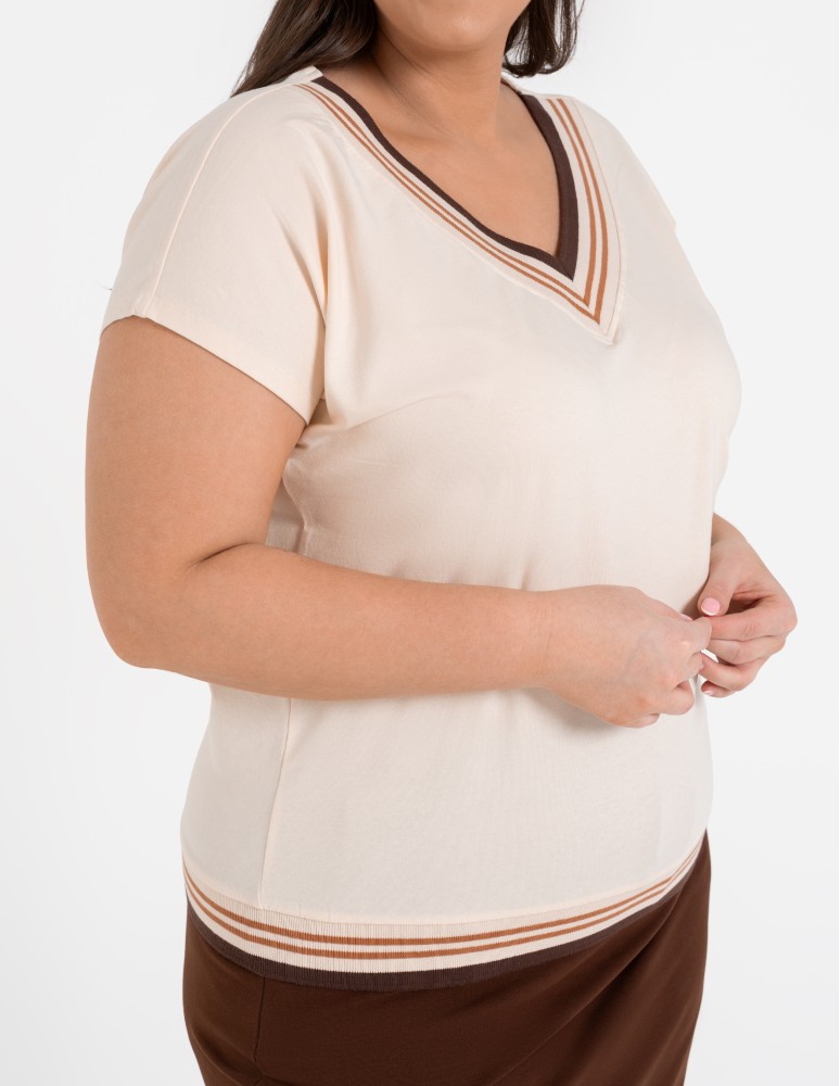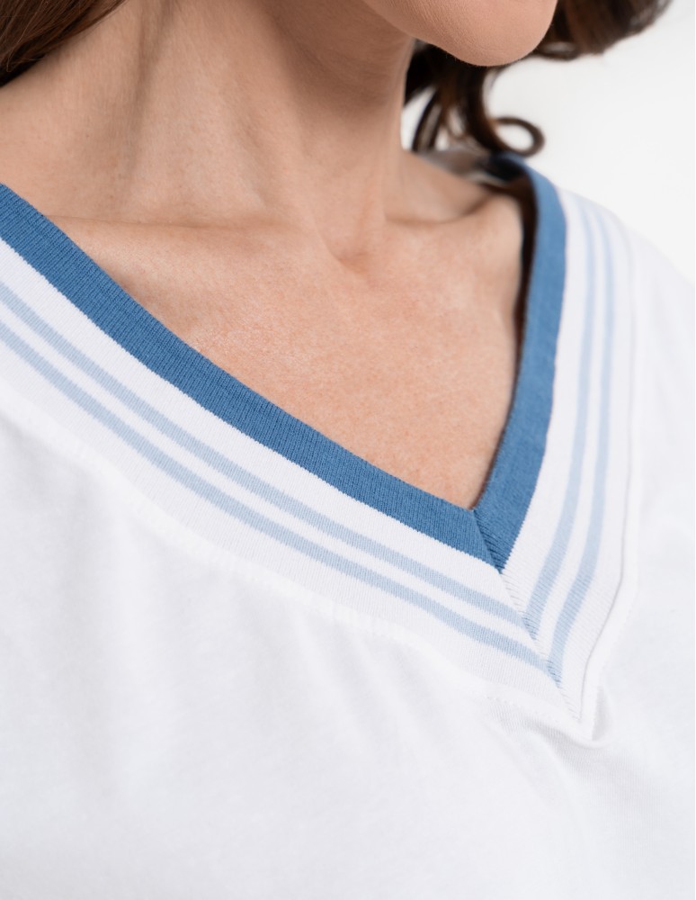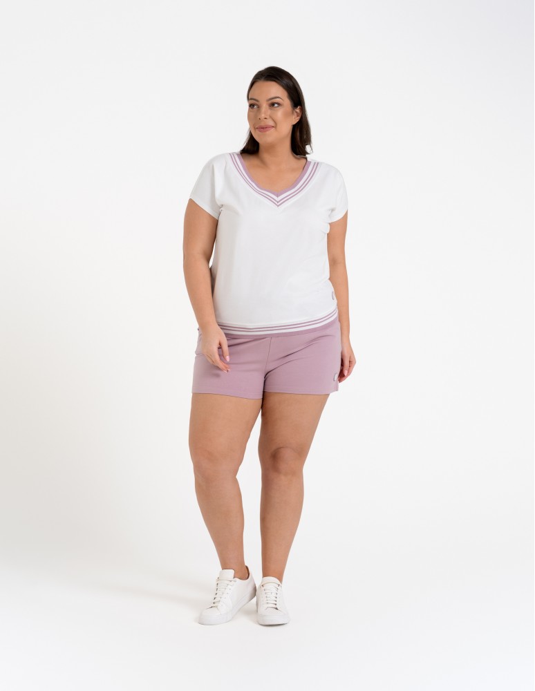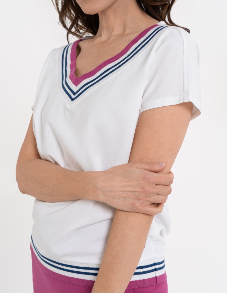 Bluzka damska z dekoltem V i ściągaczami w stylu sportowym POMARAŃCZOWY