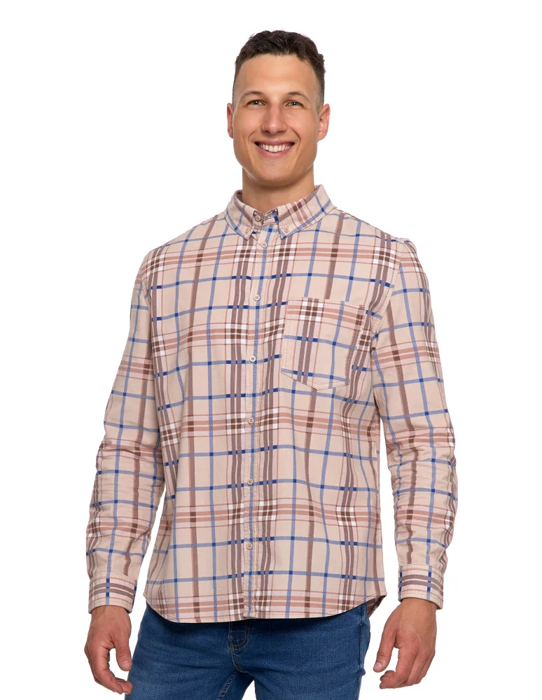 Męska koszula sztruksowa w kratkę BEŻOWY
