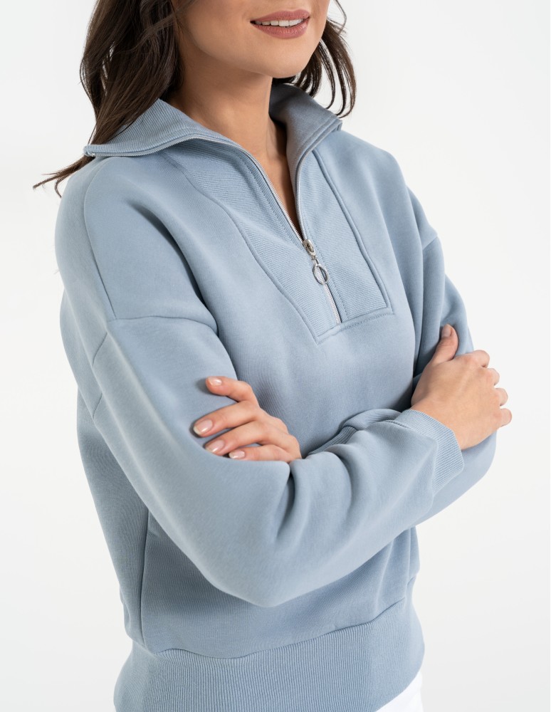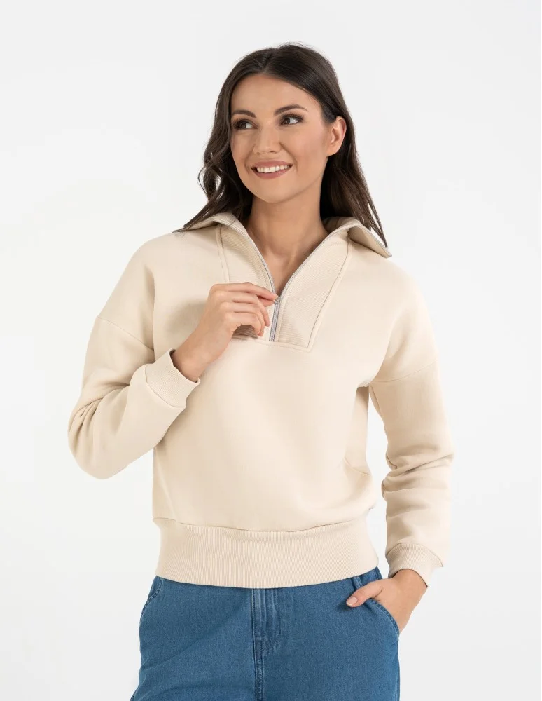 Damska bluza dresowa ze stójką i zamkiem ocieplana BEŻOWY