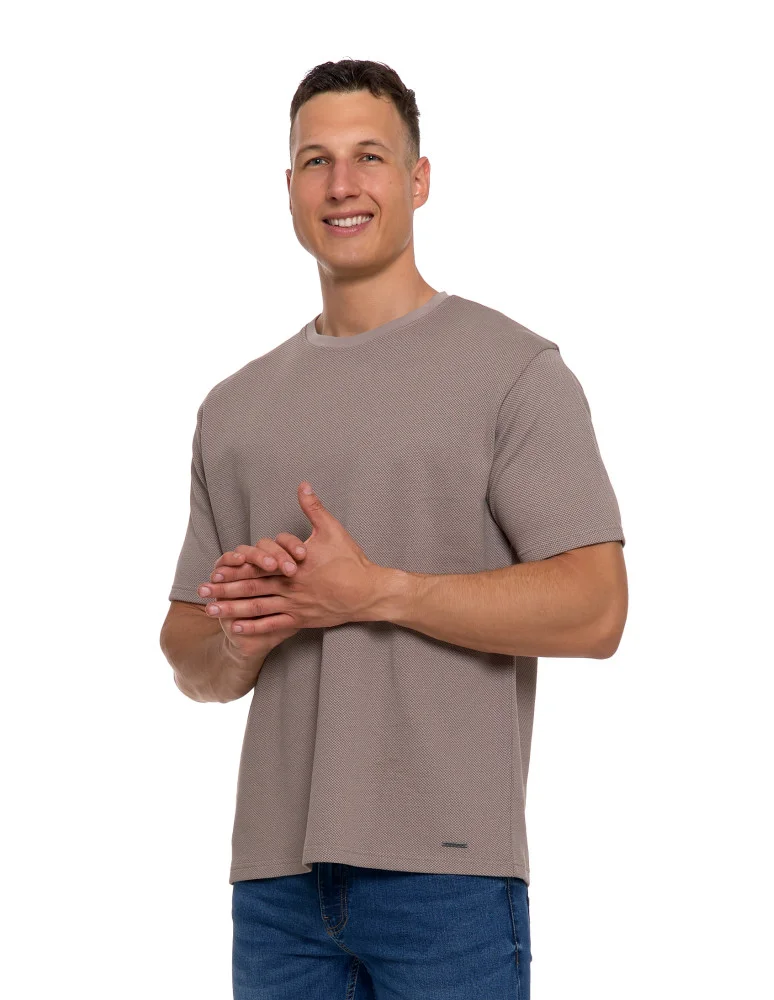 T-shirt męski klasyczny bawełniany PREMIUM BEŻOWY
