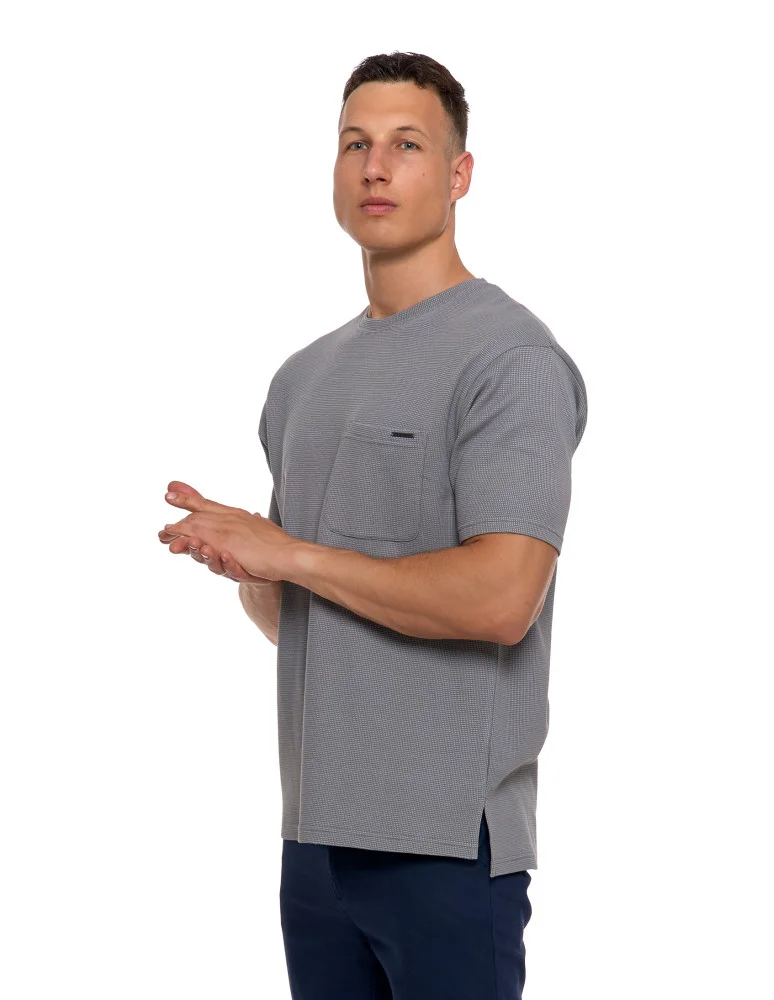 T-shirt męski strukturalny casual z kieszonką SZARY