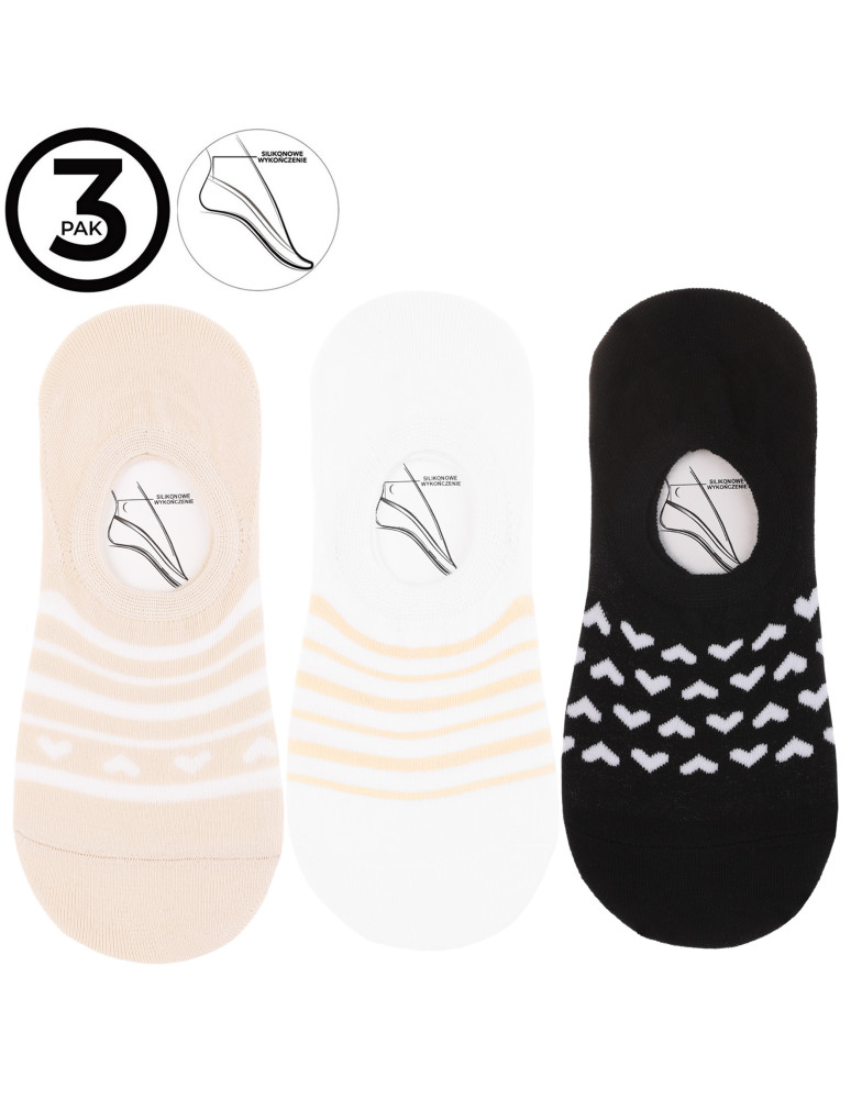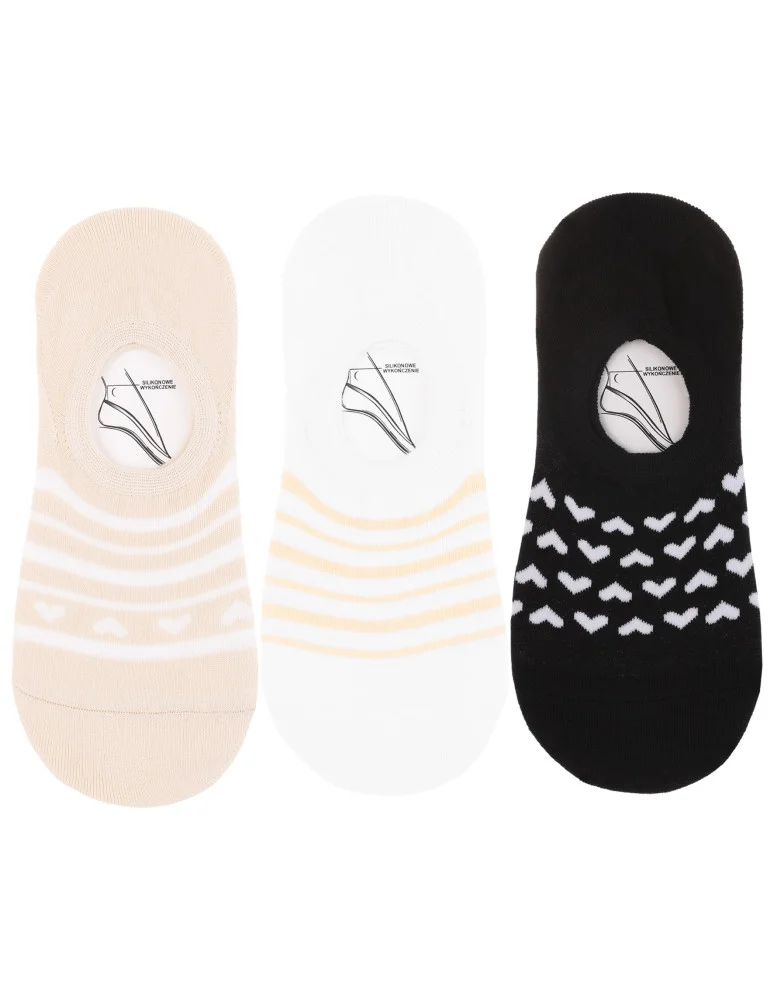 Zestaw 3 par w klasycznej, stonowanej kolorystyce z delikatnymi wzorami sprawdzi się zarówno na co dzień, jak i do bardziej elegannego obuwia. To praktyczny wybór, który łączy funkcjonalność z kobiecym stylem.