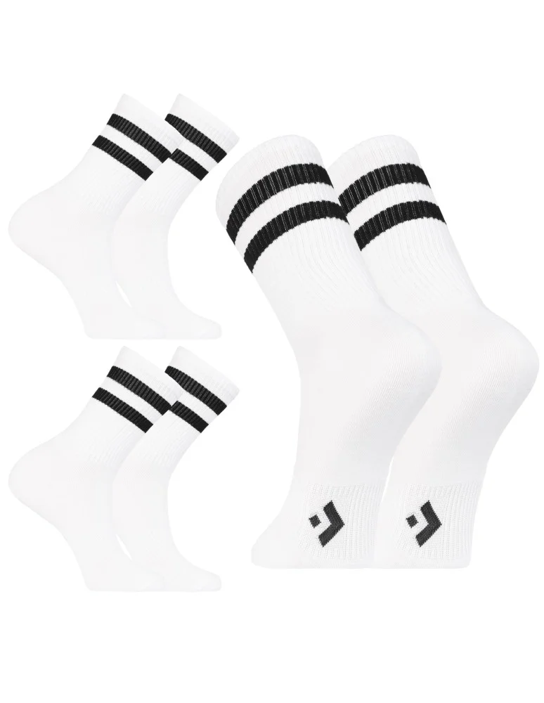 Design opiera się na prostocie – klasyczna forma została uzupełniona sportowymi paskami przy ściągaczu. Dodatkowym wyróżnikiem jest subtelne logo umieszczone na podeszwie, które nadaje skarpetom nowoczesnego charakteru i podkreśla ich dopracowane wykończenie.