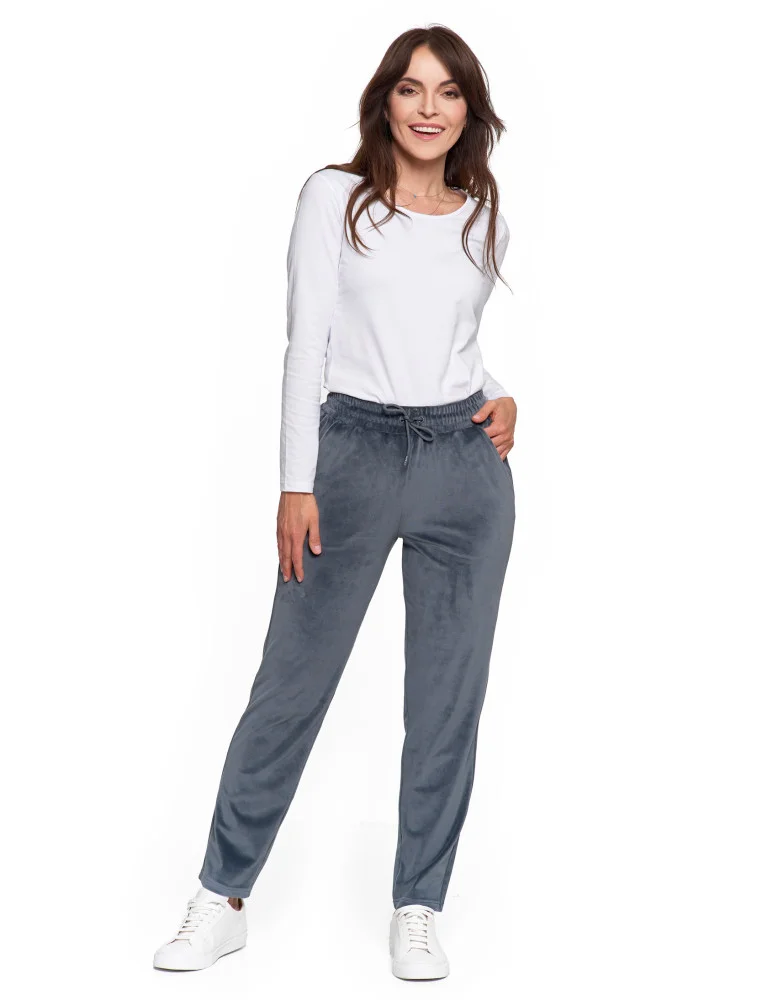 Spodnie damskie welurowe z wysokim stanem i prostą nogawką GRAFITOWY