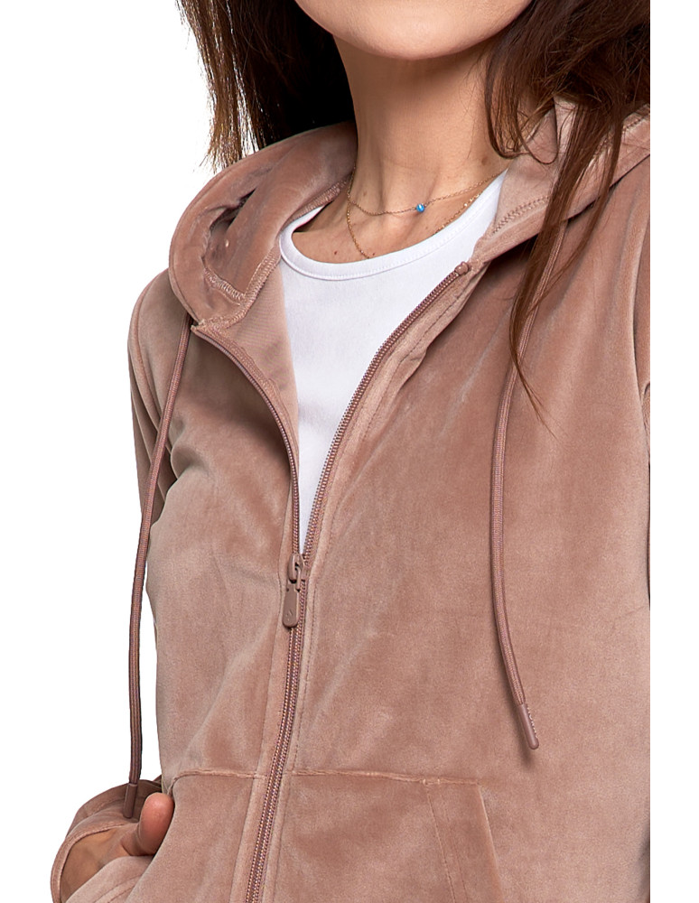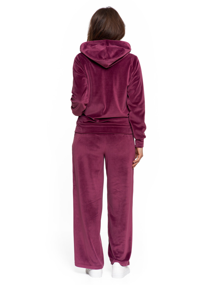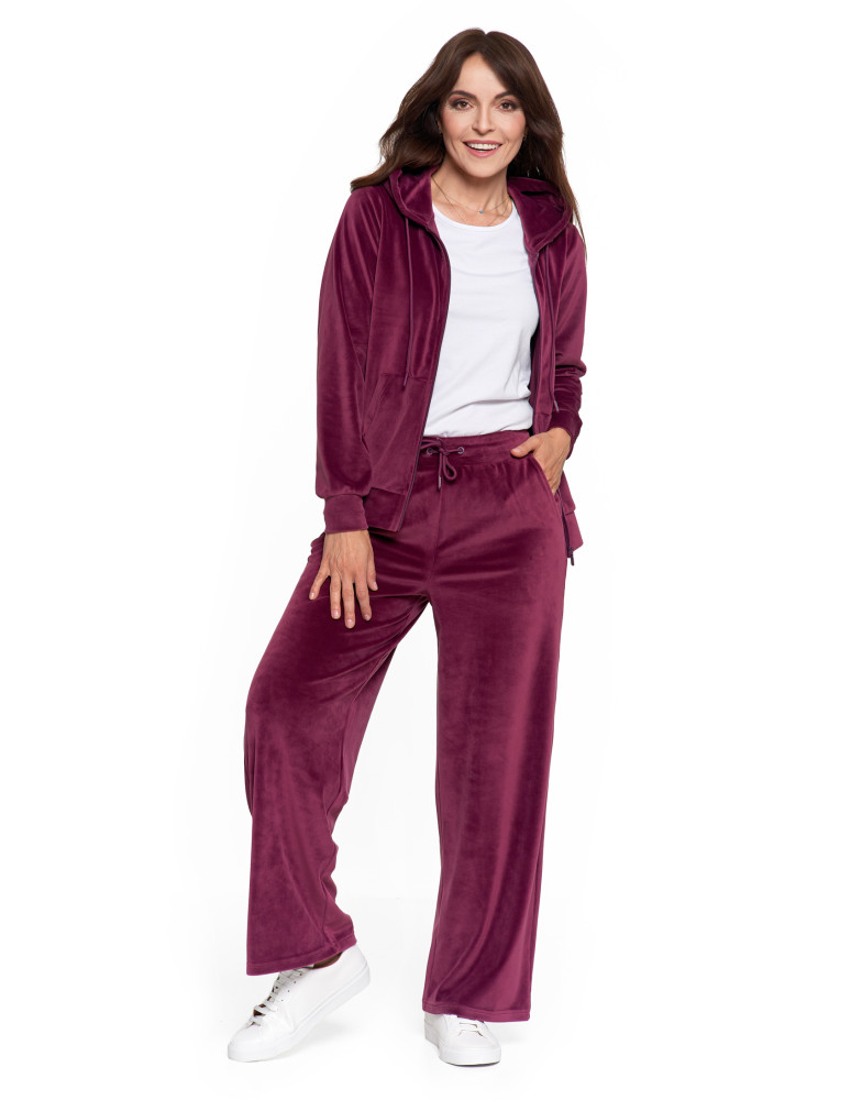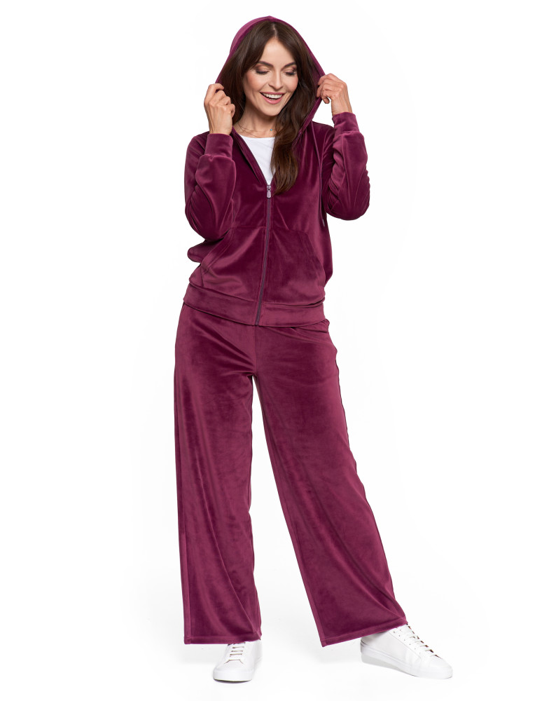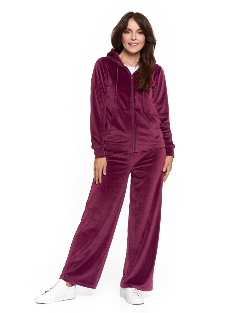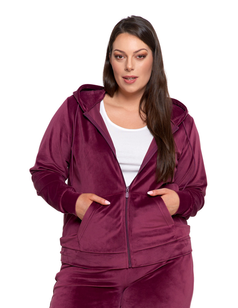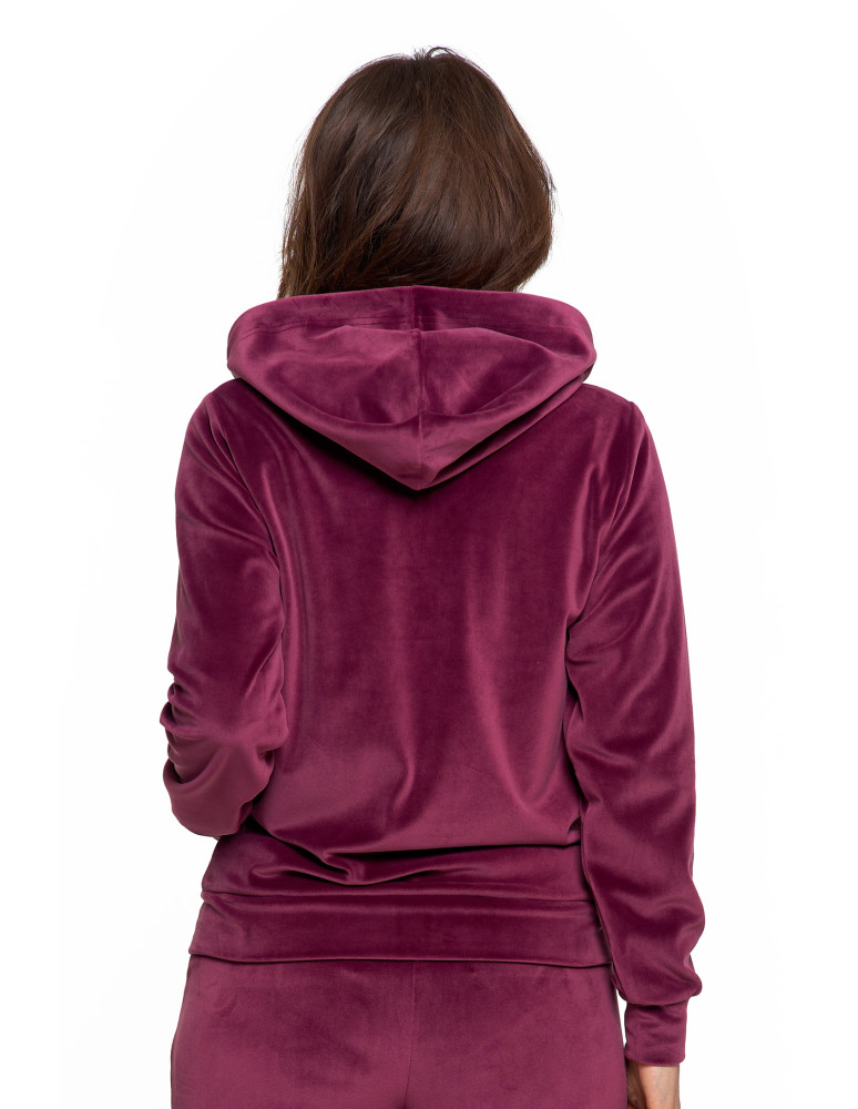 Bluza damska welurowa rozpinana z kapturem i kieszeniami BORDOWY