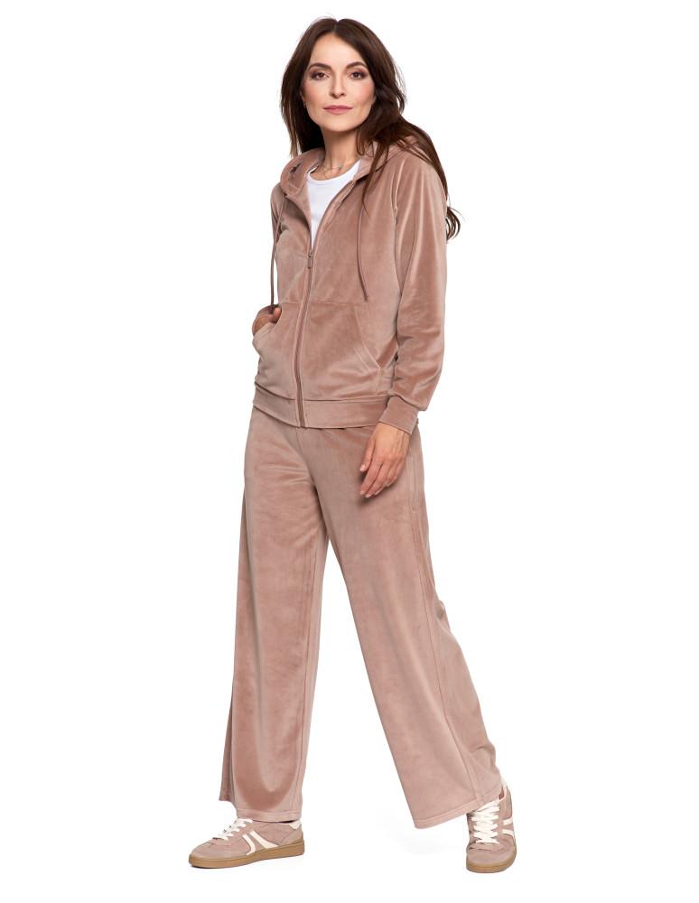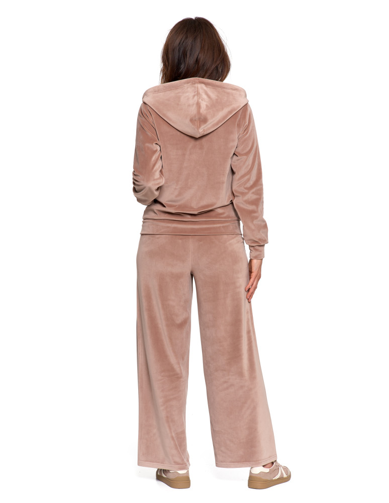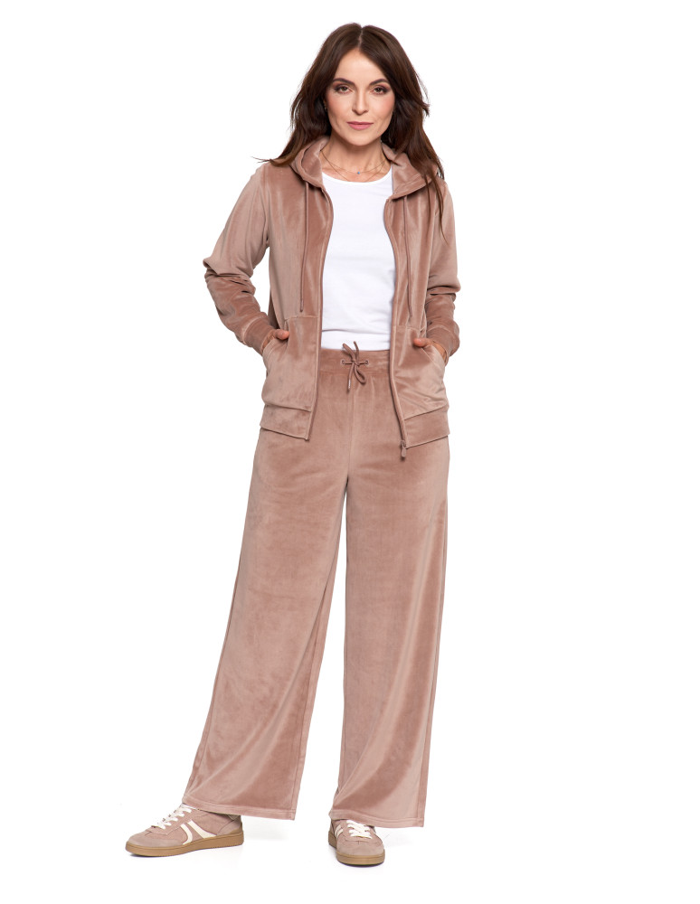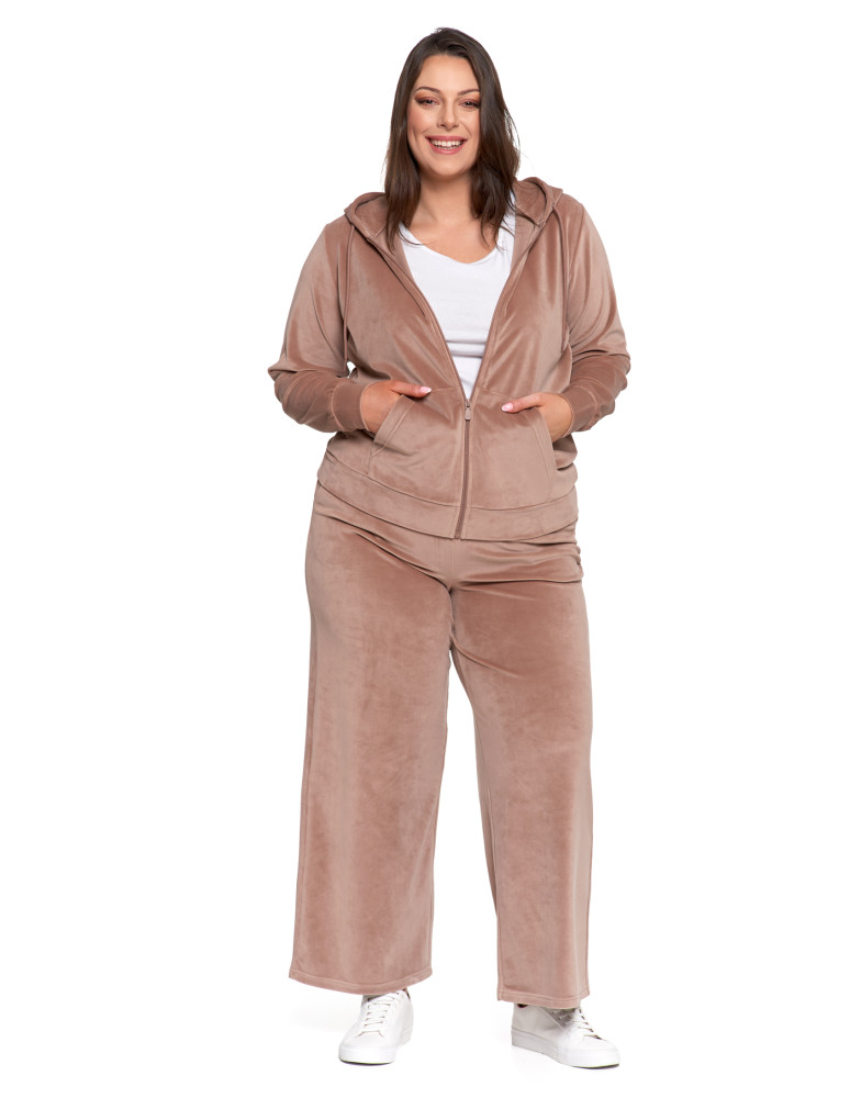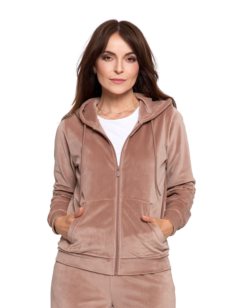 Ta rozpinana welurowa bluza to idealna propozycja na chłodniejsze dni, gdy szukasz połączenia komfortu i swobody. Wykonana z miękkiego i ciepłego weluru, otuli Cię i zapewni przyjemne uczucie. Bluza ma klasyczny krój, dzięki czemu pasuje do wielu stylizacji. Wyposażono ją w praktyczny kaptur oraz kieszenie z przodu, które są idealne na drobiazgi lub po prostu do ogrzania dłoni. To uniwersalny element garderoby, który sprawdzi się w domowym zaciszu, jak i podczas codziennych wyjść.