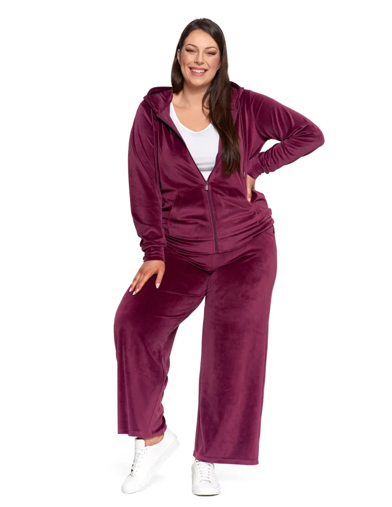Bluza damska welurowa rozpinana z kapturem i kieszeniami FIOLETOWY