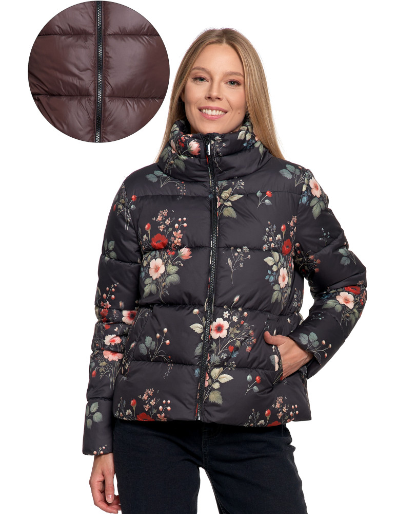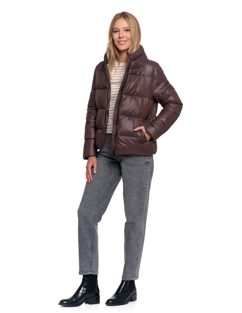Damska kurtka pikowana krótka z wysoką stójką WZÓR