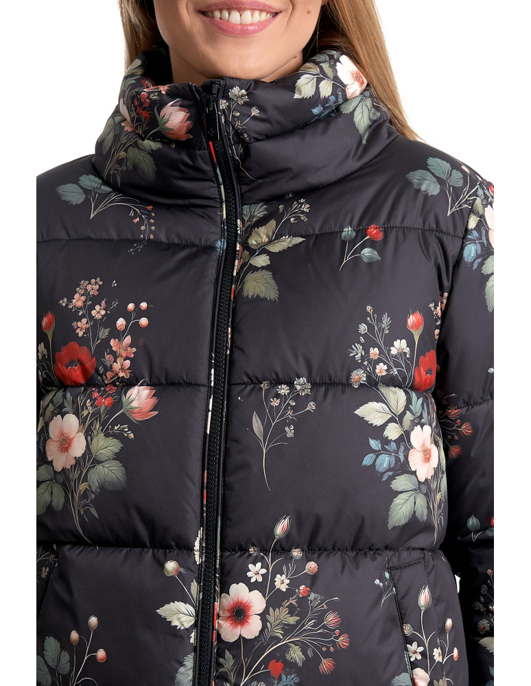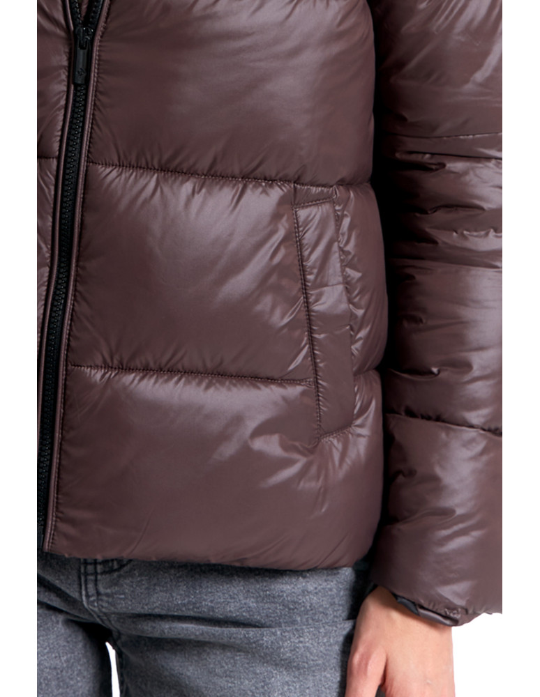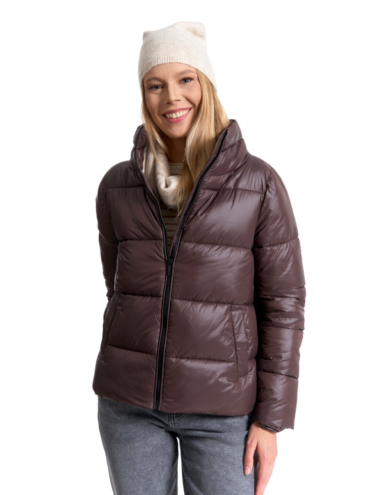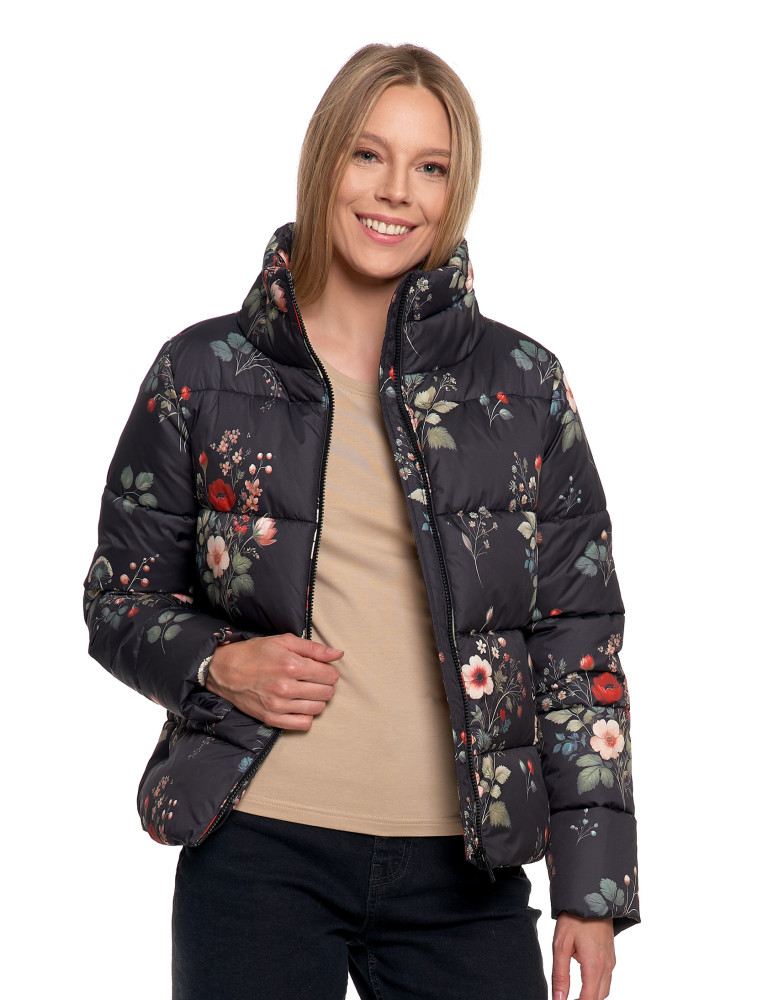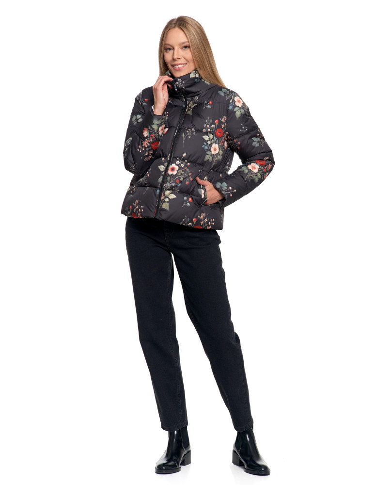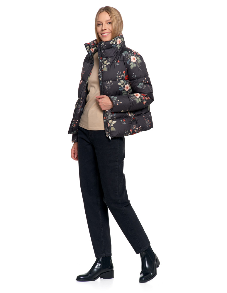 Wykonana z materiału o gładkim wykończeniu, skutecznie chroni przed wiatrem i lekkim deszczem. Wypełnienie zapewnia optymalny komfort cieplny bez zbędnego obciążenia. Kurtka posiada krótki krój typu pudełkowy oraz wysoki kołnierz (stójkę), który zastępuje szalik i chroni szyję przed chłodem.