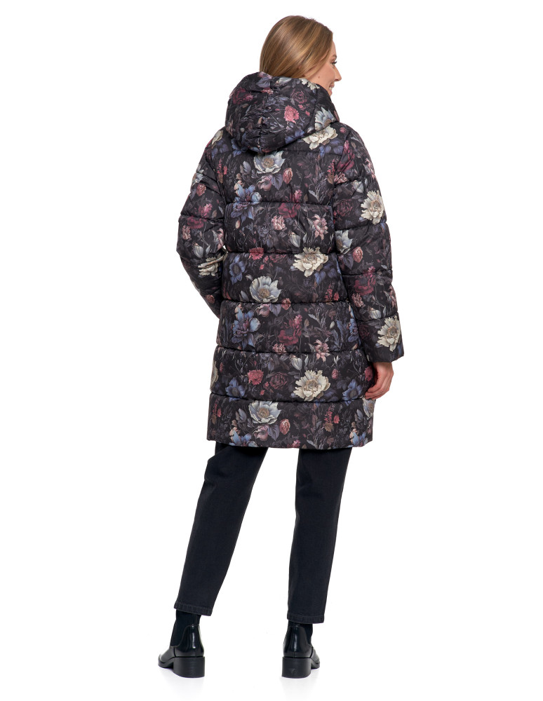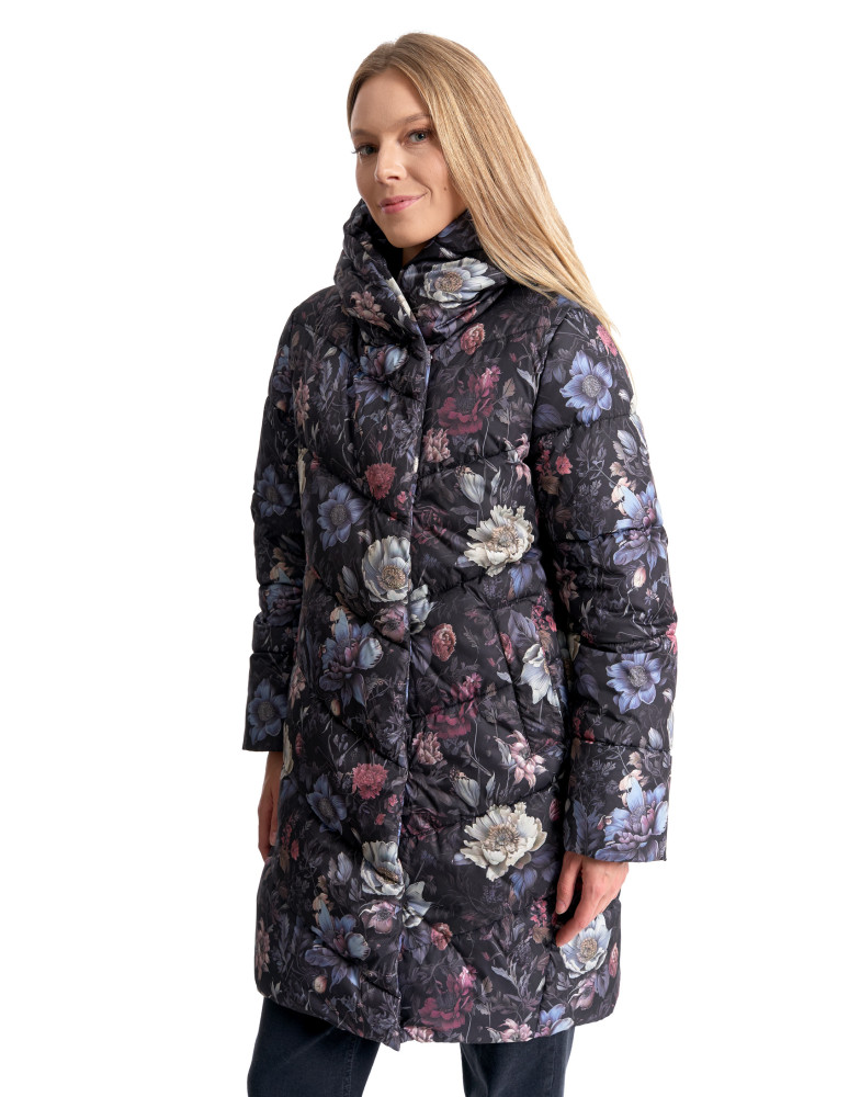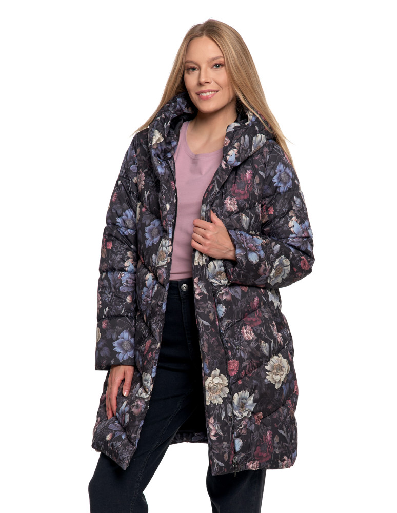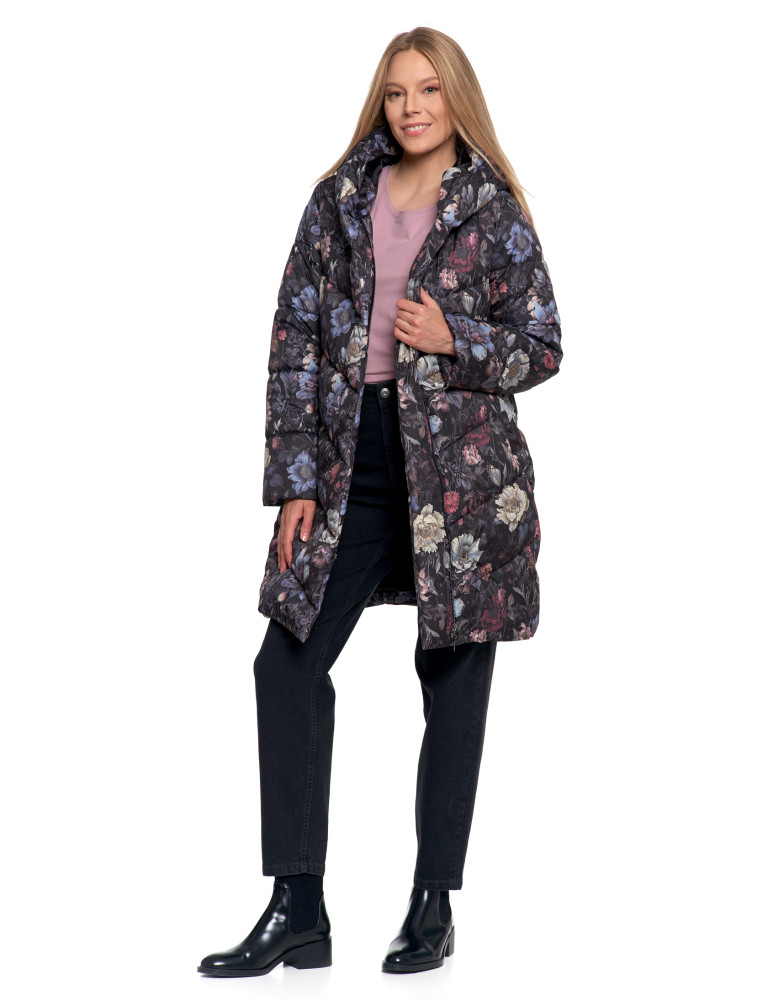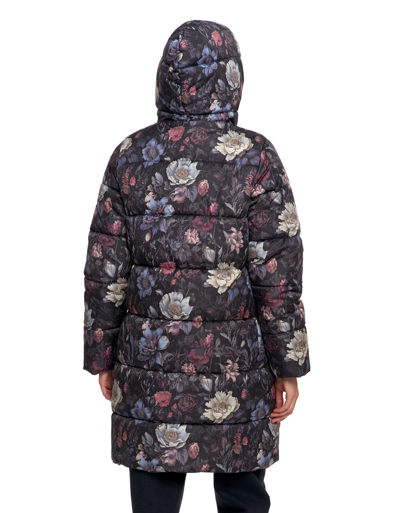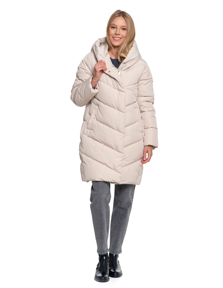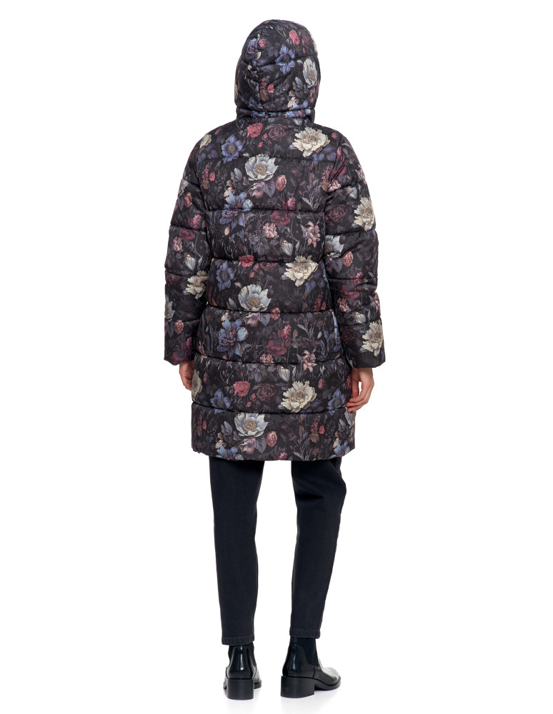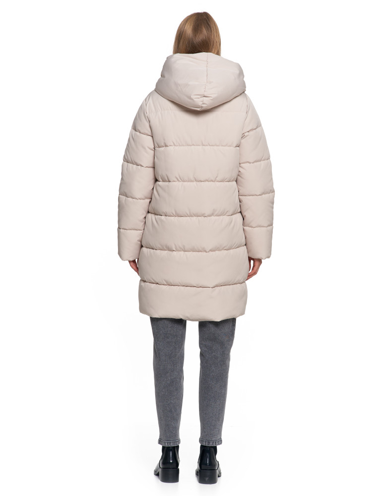 Płaszcz wyróżnia się modnym pikowaniem, które nadaje mu nowoczesnego charakteru. Jego największym atutem jest obszerny kaptur, który skutecznie chroni przed wiatrem i śniegiem. Krój jest lekko oversize’owy, co pozwala na swobodne noszenie grubych swetrów.