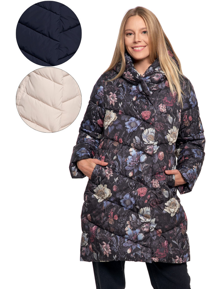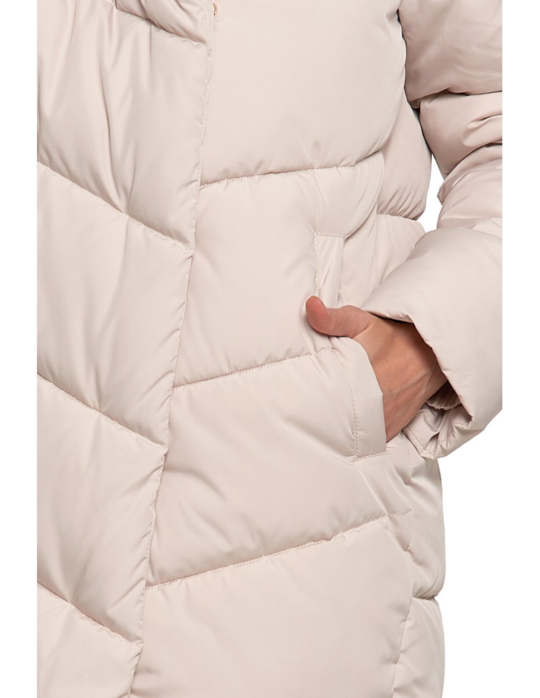 Wykonany z materiału o matowym wykończeniu, płaszcz jest lekki, ale bardzo ciepły. Zapięcie na zamek błyskawiczny i listwę z zatrzaskami dodatkowo zabezpiecza przed chłodem. Jest to idealny wybór, który sprawdzi się zarówno w codziennych, jak i bardziej wymagających, zimowych warunkach.